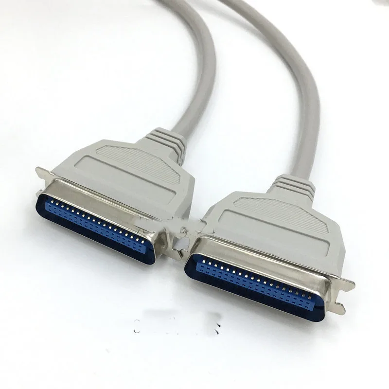 This durable CN36 printer connection cable is available in 1 meter, 1.5 meters, and 3 meters lengths, offering reliable data transfer and secure connections for printers and modems alike. Designed with a vibrant blue, rectangular connector housed in a sturdy metallic frame, it features small, outward-extending metal brackets for secure attachment. Inside, the connector’s rows of black, gold-plated pins are meticulously arranged, ensuring precise and stable contact. Made with high-quality materials and CE certified, this professional-grade cable guarantees optimal performance in a variety of printing and data transfer setups. Its sleek, industrial aesthetic combined with robust construction makes it an essential component for seamless, long-lasting connections.