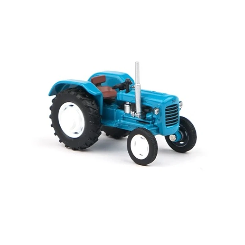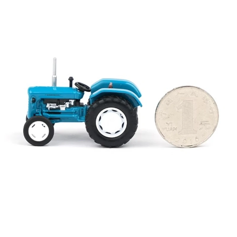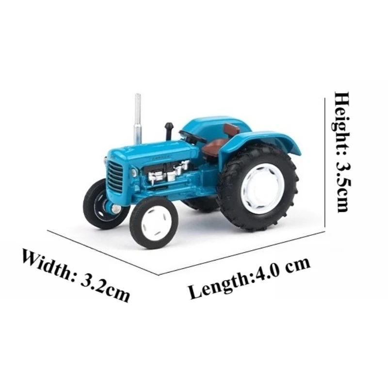 Experience the craftsmanship of this meticulously crafted blue alloy diecast tractor, model Y41-03, designed for enthusiasts and collectors. Its polished, metallic finish highlights an authentic farming silhouette, complete with a prominent front grille, detailed headlights, and styled fenders that evoke real agricultural machinery. The textured surface mimics alloy material, adding depth and realism. Black steering and seat enhance its functional appearance, while metallic silver-painted exhaust pipes and engine components provide detailed accents. The rubber tires feature smaller white front wheels and larger, deep-tread black rear tires—imparting tactile contrast and sturdy realism. This model’s balanced design makes it a captivating display piece and a must-have for collectors seeking quality craftsmanship and true-to-life detail in a compact size.