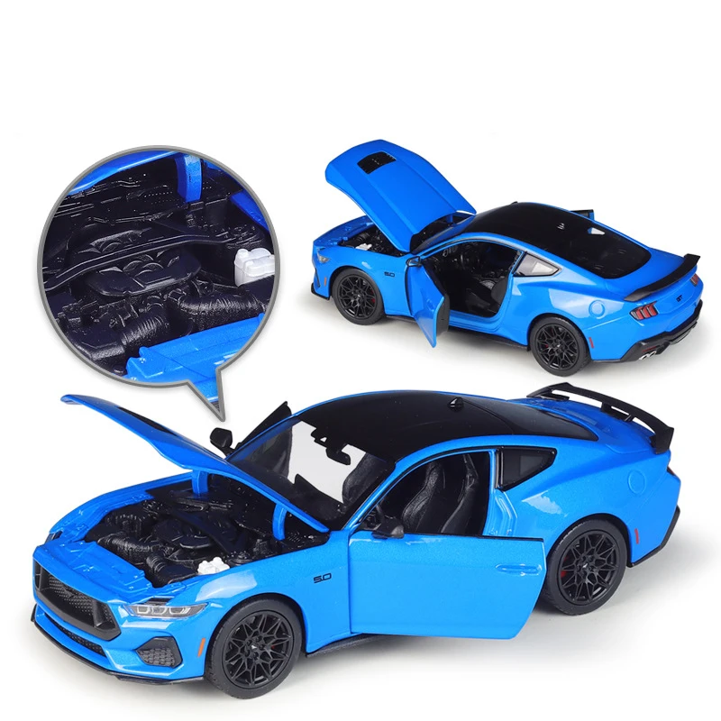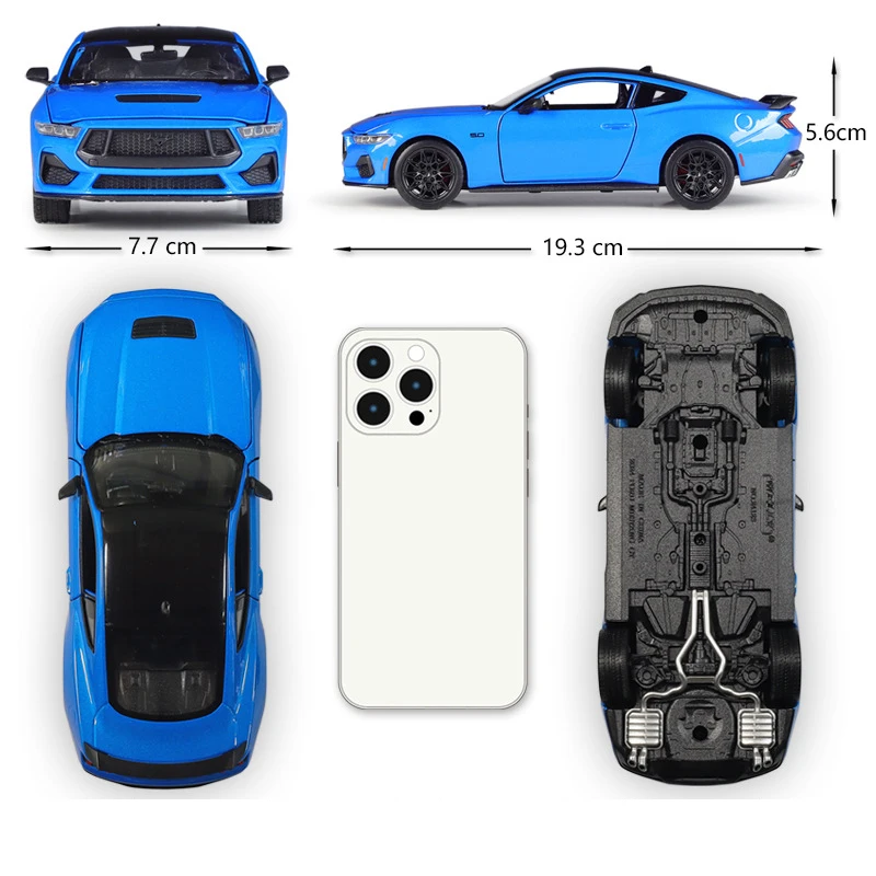 Experience the thrill of the iconic Ford Mustang GT with this highly detailed 1:24 scale diecast model, featuring a sleek blue finish with semi-gloss accents and realistic design elements. Made from alloy and plastic, it showcases sharp, aerodynamic lines, a bold black honeycomb front grille, clear headlamps, a rear spoiler, multi-spoke black wheels with treaded rubber tires, and finely molded taillights. This meticulously crafted miniature captures the muscle car’s dynamic stance and sporty elegance, making it an ideal collectible for enthusiasts and adults alike. Perfectly suited for display, this non-electronic model offers durability and authentic detailing, allowing you to visualize and own a replica of this legendary vehicle.
