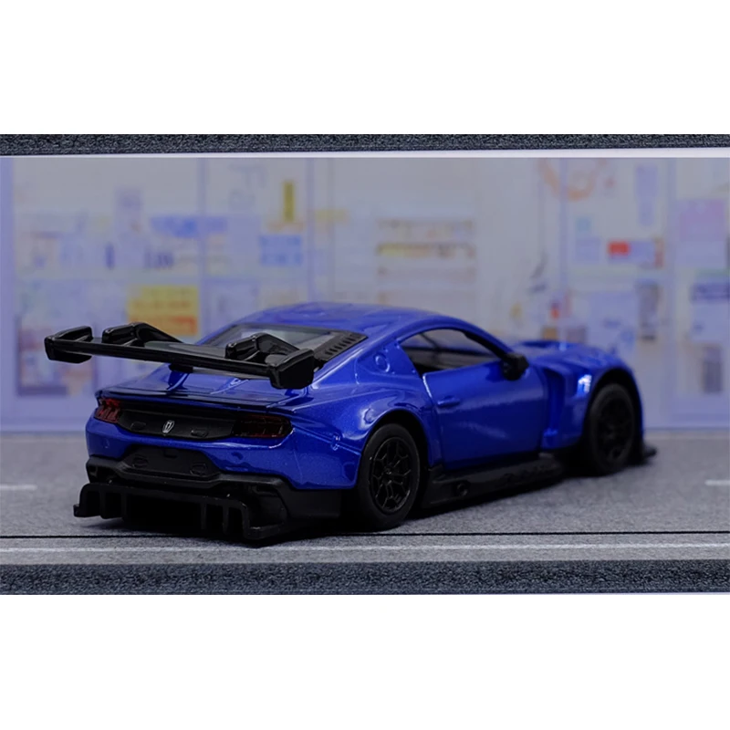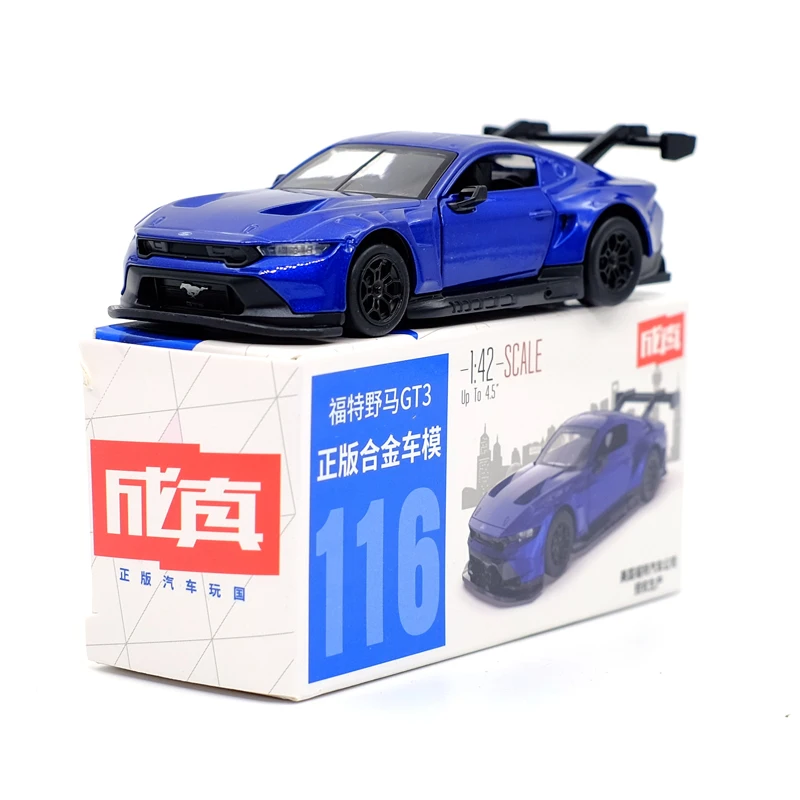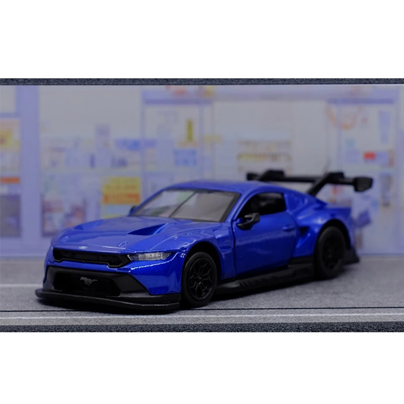 Imagine showcasing the sleek, high-performance spirit of a real racing car with this detailed Ford Mustang GT3 diecast model. Crafted at a 1:42 scale, it measures 3.5 cm high, 11.5 cm long, and 4.5 cm wide, capturing the dynamic curvature and aggressive aerodynamic features of a professional race car. The vibrant blue paint job, combined with a smooth glossy finish, exudes energy and speed. With transparent windows revealing a finely detailed interior, realistic air vents, and precise headlight accents, this model offers a lifelike aesthetic. The bold rear wing spoiler and multi-spoke black wheels emphasize its racing pedigree. Perfect for collection, education, or display, it provides a tangible connection to high-speed sportscars.