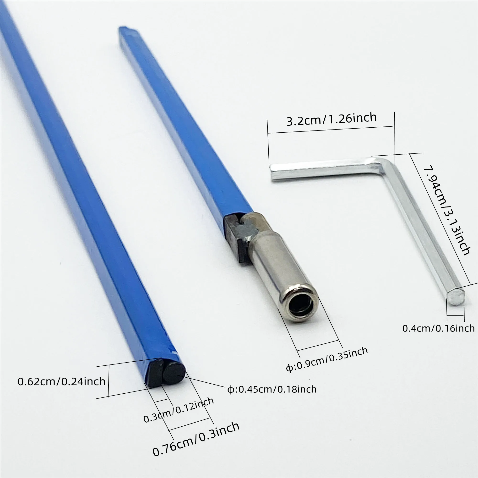 Enhance your guitar maintenance with this set of high-quality metal blue adjustment levers, featuring lengths from 220 mm to 630 mm for versatile neck tuning. Each lever is crafted with secure welding points and a durable hexagon socket nut, ensuring reliable performance and stability during use. The set includes a matching hex wrench for precise adjustments, making it an essential tool for guitar enthusiasts and professionals. With strict quality control and customizable options, these sleek, vibrant blue levers combine functional efficiency with a modern aesthetic, helping you achieve perfect neck alignment effortlessly. Perfect for maintaining and tuning your guitar with confidence and accuracy.