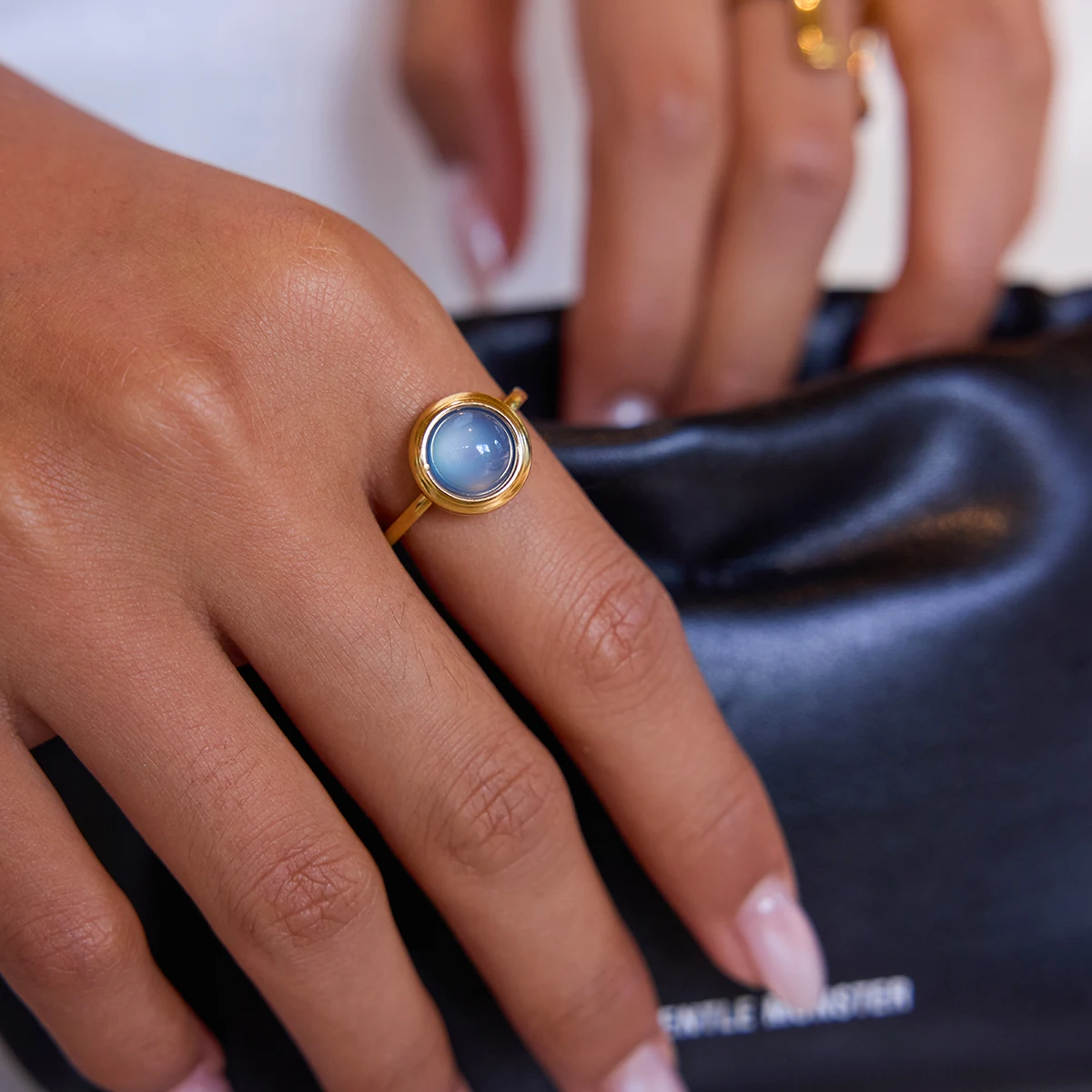 - Technical specifications: stainless steel core, gold-colored plating, vibrant blue resin in horseshoe and geometric motifs, includes necklace, earrings, bracelet, and wide ring.