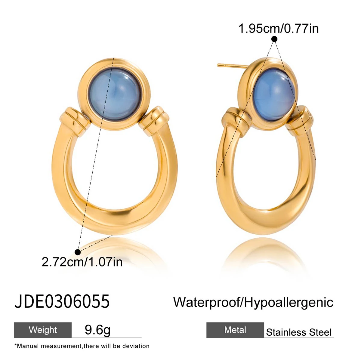 - Features vivid blue resin elements in horseshoe and geometric shapes, adding bold, eye-catching color accents for a modern, stylish appearance perfect for trendy outfits.