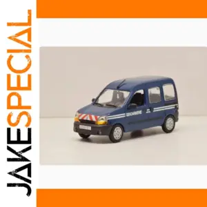 This detailed 1/43 scale diecast alloy and plastic model features a bright blue Kangoo MPV van designed for collectors, display, and gifting. Its realistic compact, boxy design showcases clear molded headlights, windshield, and side windows with white “GENDARMERIE” decals and racing stripes, providing an authentic law enforcement aesthetic. The model has silver rims with textured black tires, black front bumper, and side mirrors, capturing fine details for a vibrant display piece. Non-electric and without a battery, it’s suitable for ages 14 and above, emphasizing durability and realism for static decoration or collection purposes.