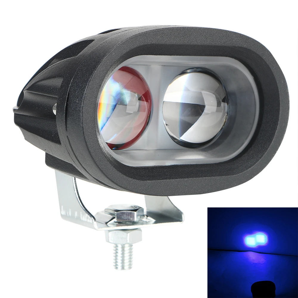Experience the reliability and clarity of this this LED forklift Blue Warning Lamp, specially designed for industrial and off-road use. Built with a durable die-cast aluminum housing and a tough PC lens, this spotlight offers exceptional weather resistance with an IP67/IP68 rating, ensuring optimal performance in harsh environments. Its vivid blue beam, produced by a 20W dual LED setup (10W x 2), delivers a focused spot pattern with a color temperature of approximately 6500K, improving visibility and safety. Easy to mount with its stainless steel bracket, this compact yet powerful light is perfect for forklifts, trucks, ATVs, and other equipment needing a high-performance warning signal. Illuminate your worksite confidently with this energy-efficient warning lamp.