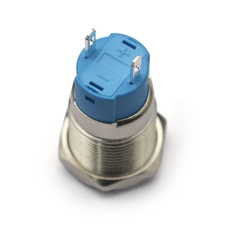 Enhance your guitar or bass electronics with this set of two blue M12 self-locking push button switches, featuring a sleek, metallic design and two-pin, 2-position (on/off) operation. Crafted from durable metal and designed for precise circuit control, these switches are perfect for building or upgrading musical instrument electronics. Their compact size and industrial aesthetic, combined with a vibrant blue color and a smooth, rounded top, ensure easy installation and reliable functionality. Suitable for DIY musicians and professional luthiers alike, these new, unused switches provide a seamless way to add silence or circuit-cutoff functions to your guitar or bass setup, delivering both style and dependable performance in every use.