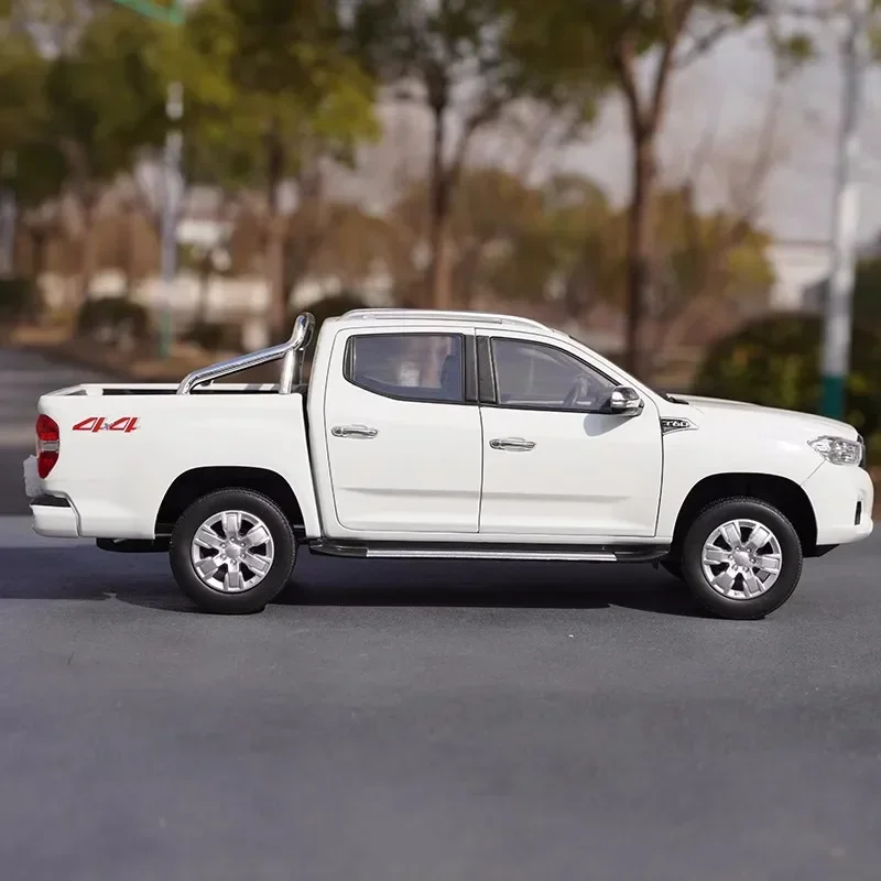 Imagine owning a highly detailed miniature of the iconic MAXUS T60 pickup, the perfect addition to your collection. Crafted with precision from durable diecast metal, this model showcases an eye-catching metallic blue finish that reflects light beautifully, highlighting its sleek contours and dynamic design. The front grille with vertical chrome bars and clear intricately detailed headlights give it a realistic appeal. Additionally, the black textured tires with silver alloy rims are capable of turning, adding authenticity. Its balanced stance and finely detailed body panels, including door handles and side moldings, give it a rugged yet sophisticated look. This model is designed for display and collection, making it a remarkable replica of the full-sized vehicle for any enthusiast.