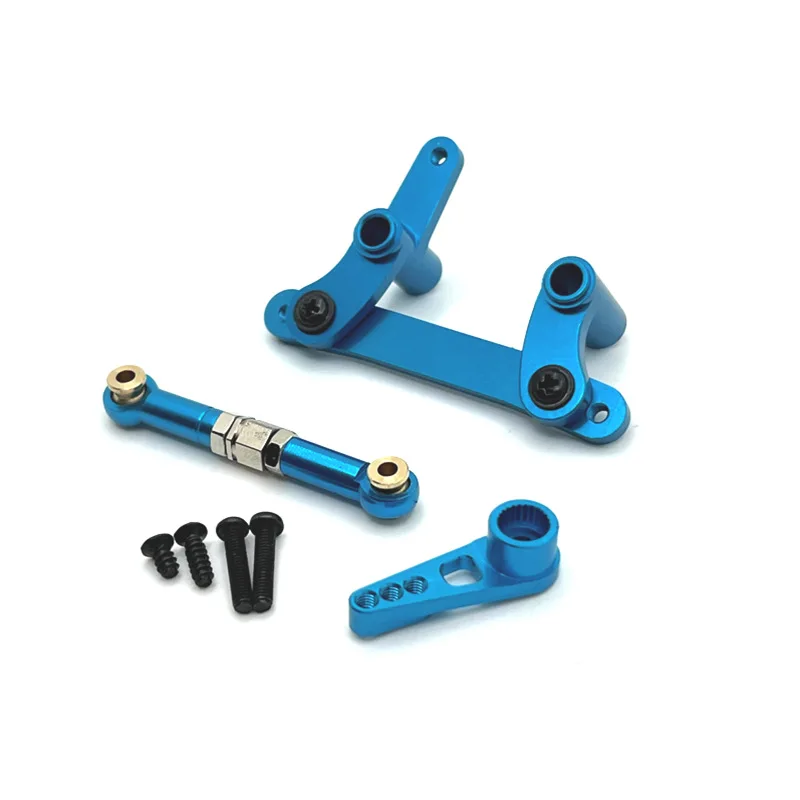 Experience a sleek upgrade with this high-quality blue metal steering assembly and servo link rod designed for 1/16 RC cars. Crafted from durable metal, it offers enhanced strength and longevity while elevating your vehicle's appearance with its striking anodized finish. Easy to install, these parts blend functionality with style, making your RC car stand out during races or casual drives. Whether you're replacing worn components or customizing your model, this set provides reliable performance with precise movement. Be confident knowing you're upgrading with parts compatible with popular models like SCY 16101, 16102, 16103, 16104, 16106, 16201, JJRC C8805, Q130A/B, Q141, D843-YW, and Q117A/B/C/D. Perfect for enthusiasts who value both aesthetics and durability.