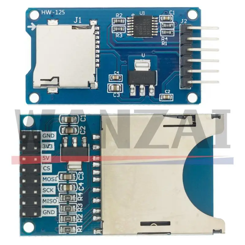 - Supports Micro SD and Micro SDHC cards with a high-speed SPI interface, allowing fast data read and write operations in embedded applications.