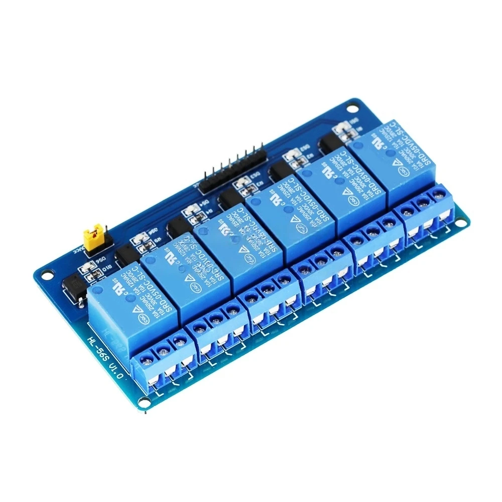 Experience seamless automation with this high-quality relay module, featuring an appealing vivid blue design that exudes modern technological sophistication. Available in 1, 2, 4, 6, or 8 channels, this module supports both 5V and 12V power supplies, providing flexible integration into various projects. Its robust construction includes optocoupler isolation for safety and high or low level trigger options for adaptability. The uniform, rectangular relays are precisely mounted on a matching blue PCB, decorated with white markings for quick identification. Small black switches, jumpers, and LED indicators add functional beauty while enhancing usability. Whether for industrial control, home automation, or hobbyist projects, this module combines aesthetic appeal with technical reliability to meet diverse needs, making your automation setup sleek, efficient, and visually cohesive.