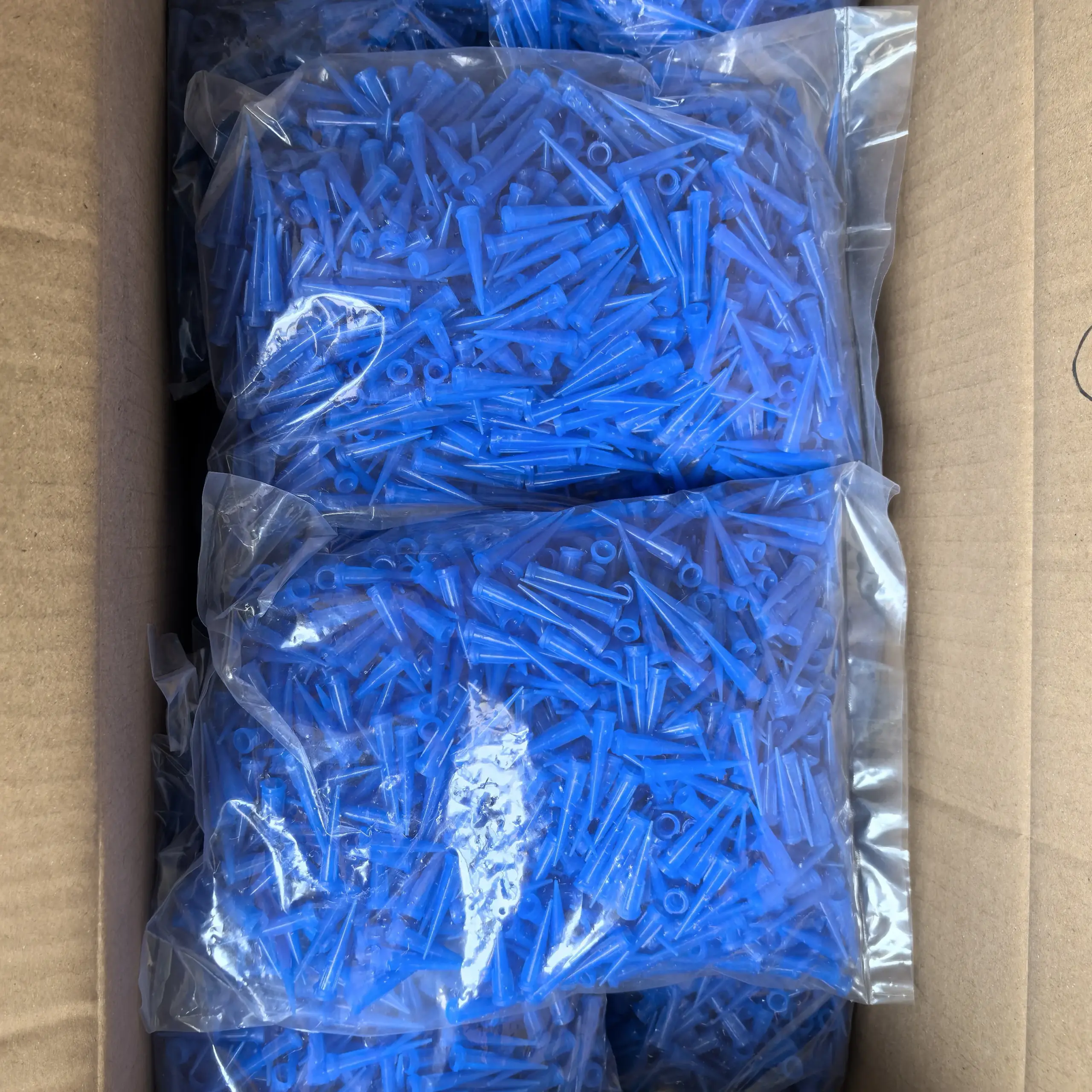 Experience precision with this set of blue plastic tapered pinhead liquid dispenser needles. Designed for accurate application of fluids such as UV glue, these needles feature a sleek, glossy finish and a smooth tapered shape leading to a sharp tip. The transparent tips allow for easy monitoring of fluid flow, making your dispensing tasks more controlled and reliable. Available in packages of 100 or 1000 pieces, they are perfect for industrial, technical, or hobby use where precision matters. Crafted from durable plastic, these needles are lightweight, easy to attach to syringes or dispensers, and suitable for professional environments. Their elegant, minimalist design ensures both functionality and ease of use, elevating your workflow efficiency.