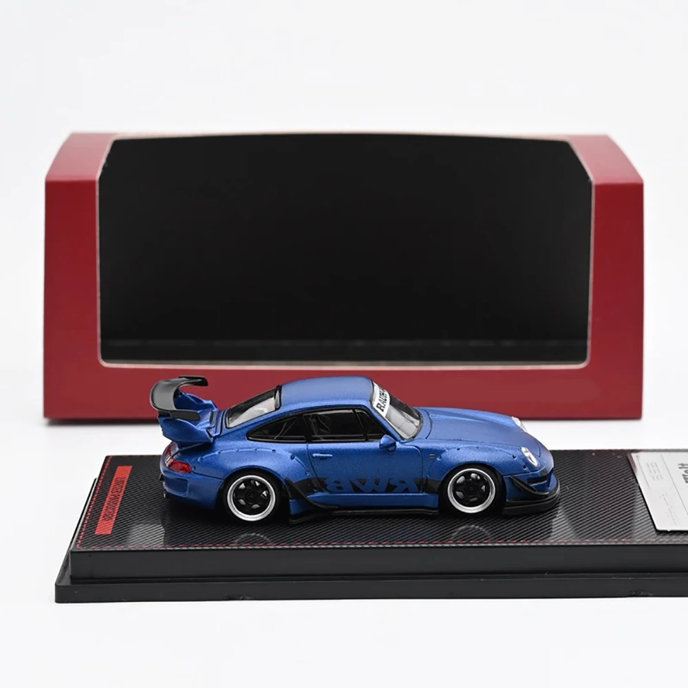 Immerse yourself in the exquisite craftsmanship of this detailed 1:64 scale model of a Porsche Wide Body Modified RWB 993 coupe. Crafted from alloy with plastic accents, this collector’s piece captures the bold, sporty essence of the real vehicle. Its vibrant blue finish, smooth aerodynamic curves, and meticulously designed wide wheel arches reflect a high-performance aesthetic. The model features realistic black alloy wheels with silver rims, low-profile tires, a prominent rear wing spoiler, and a diffuser-styled rear bumper—elements that evoke a racing spirit. Perfect for display, this model brings a touch of automotive elegance and sporty appeal to any collection or decor. It’s an ideal gift for enthusiasts and collectors alike.