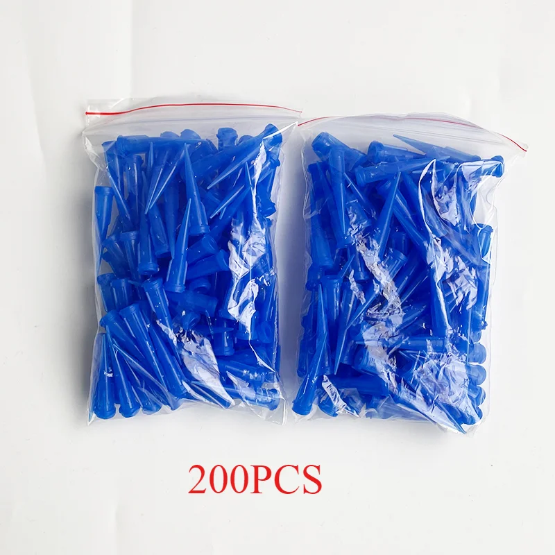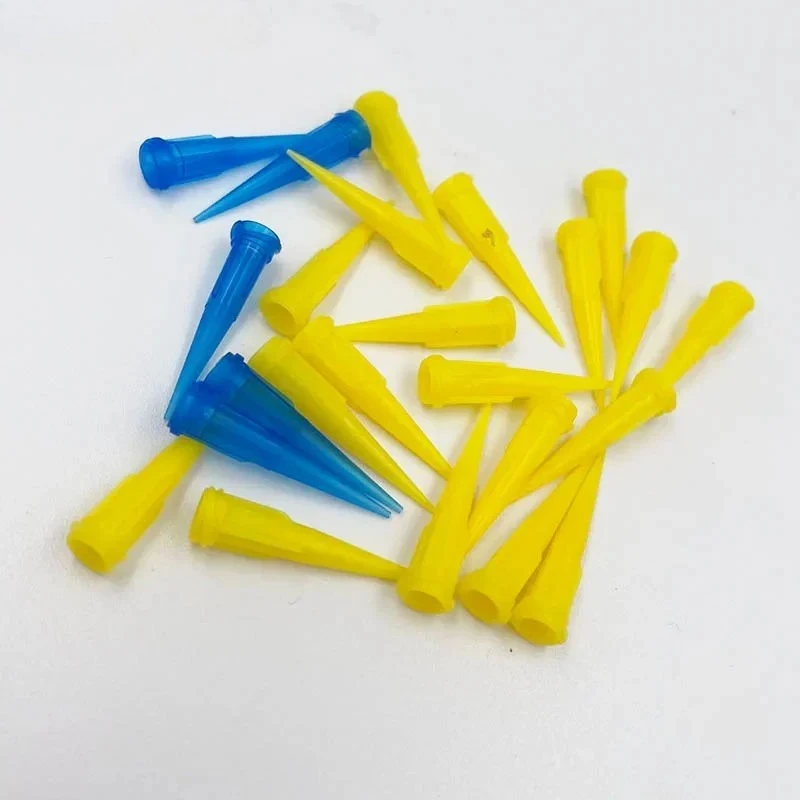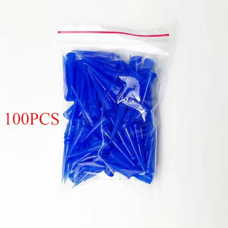 - 100pcs set of durable, semi-transparent blue plastic needle tips for accuracy in dispensing liquids like UV glue.