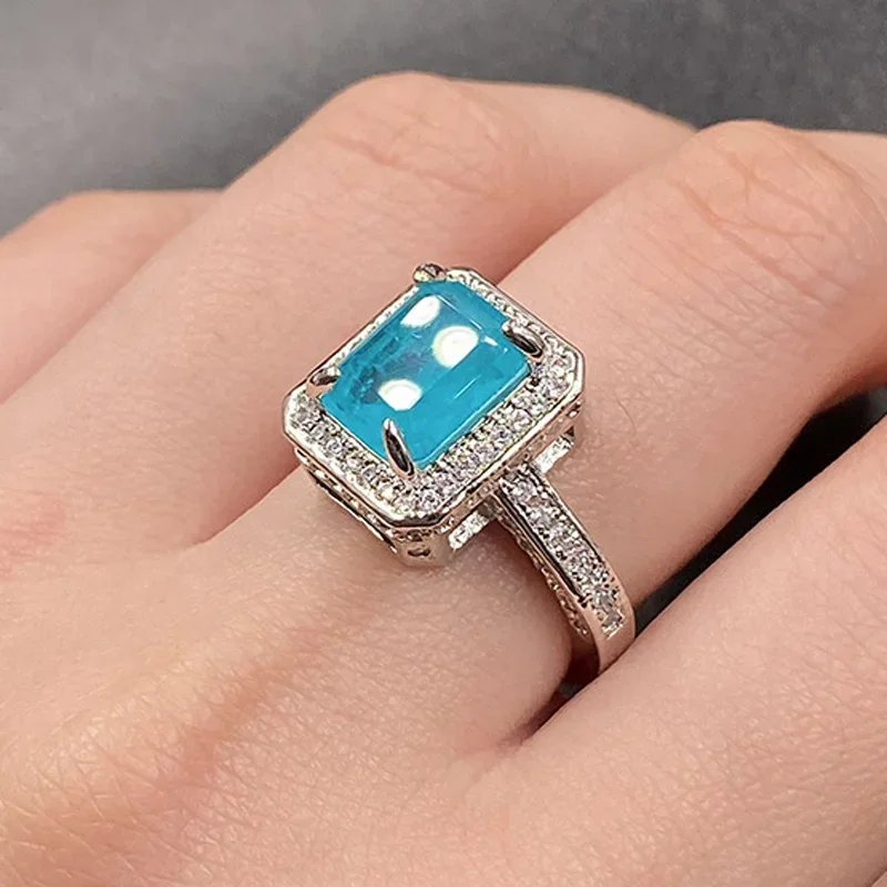 Elevate your special moments with this elegant women’s wedding ring featuring a stunning square sapphire gemstone in a vivid light blue hue, set in 925 sterling silver with a prong setting. The design includes a delicate side stone of light blue zircon, adding subtle sparkle. Available in sizes 6, 8, and 10, with a total weight of approximately 1.8 grams, this fine jewelry piece combines classic sophistication with modern style. Its meticulously crafted setting highlights the vibrant gemstone, making it suitable for weddings, engagements, and other celebratory occasions. Perfect for those who appreciate timeless elegance and customizable options, this ring is a meaningful choice for any refined collection.