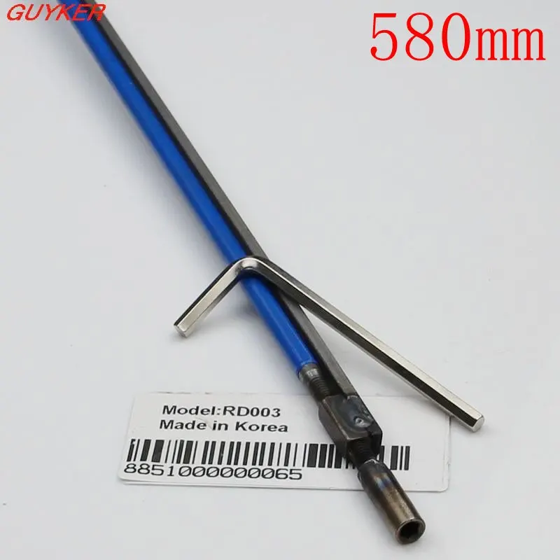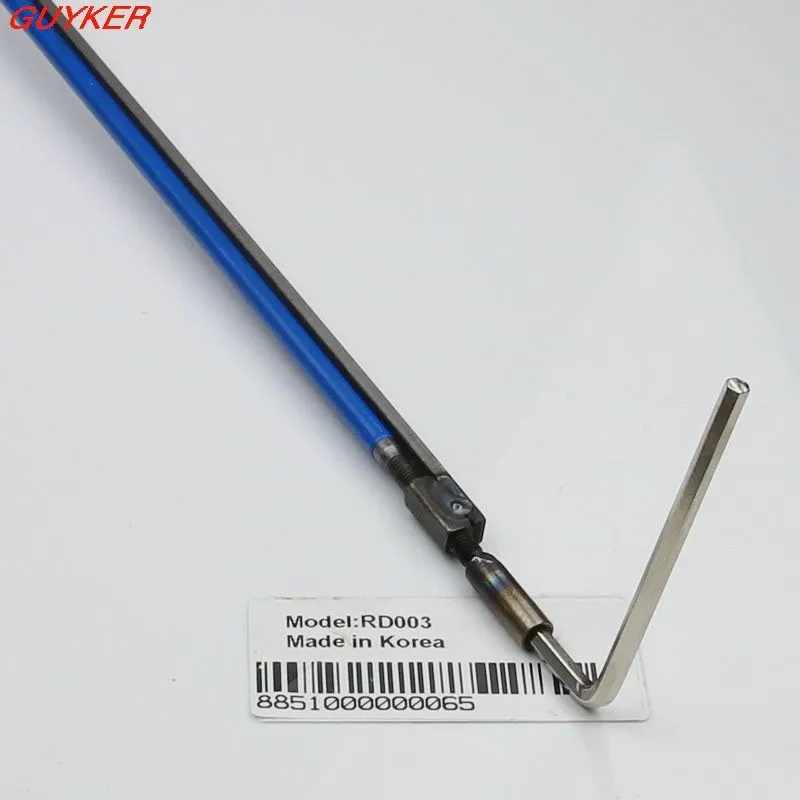 Discover the essential tool for precise electric guitar maintenance with this sleek, modern steel Allen wrench. Designed for durability and style, the long, slender shaft is coated in a vibrant blue finish, making it easily recognizable in your toolkit. Its straight, smooth body ensures effortless handling, while the machined, darker steel tip guarantees an exact fit into truss rod screws. The angled end with a hexagonal socket allows easy adjustments in tight spaces, and the black grip section near the middle offers a comfortable, non-slip hold. Available in two lengths—440mm and 580mm—this tool provides flexibility for different guitar configurations. Combining industrial aesthetics with high performance, it is a must-have for any guitar enthusiast seeking precision and style.