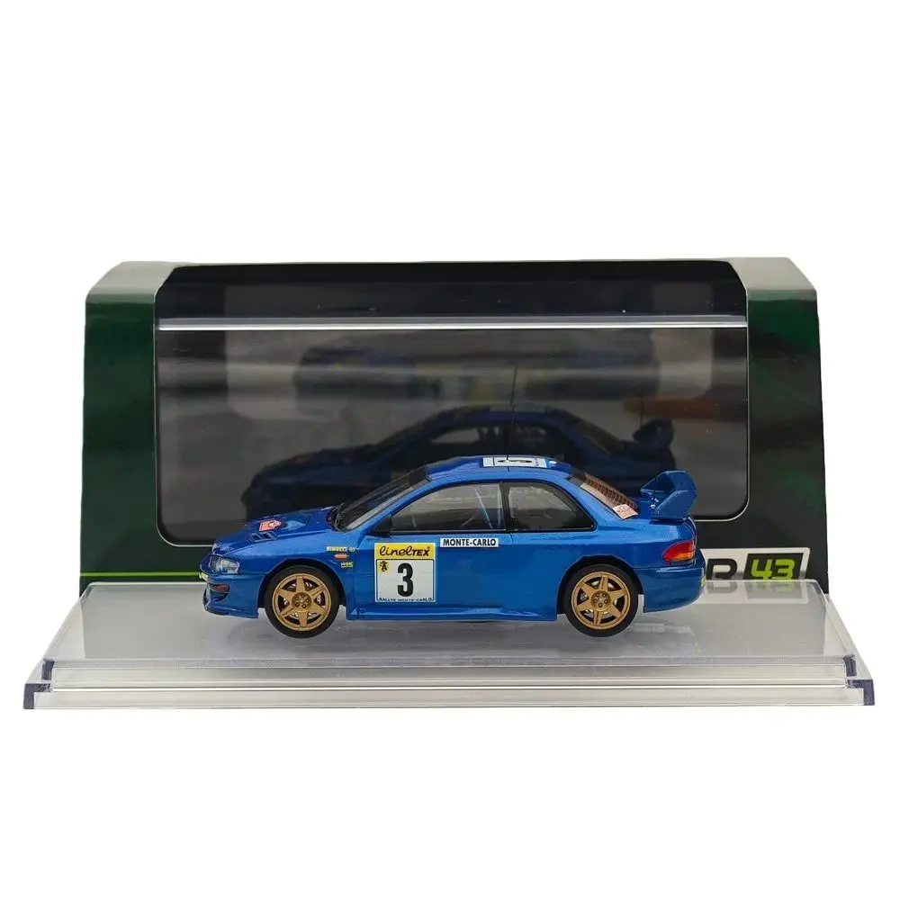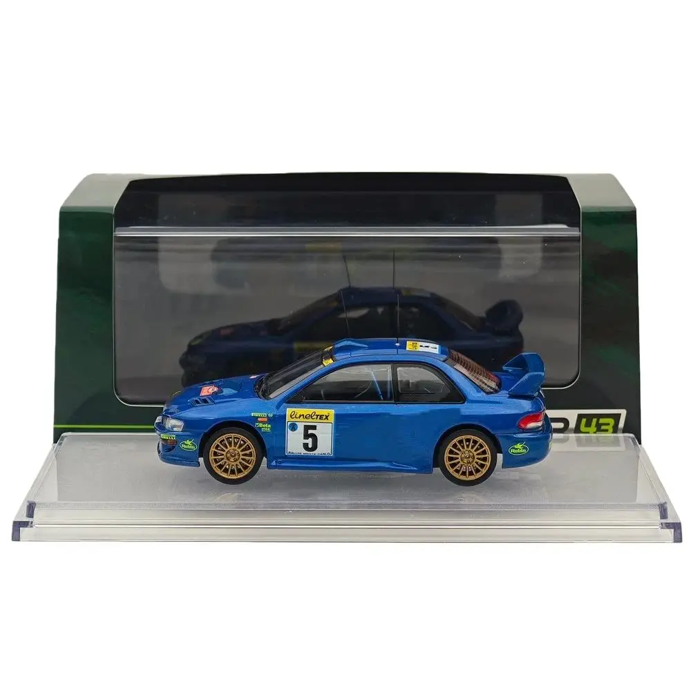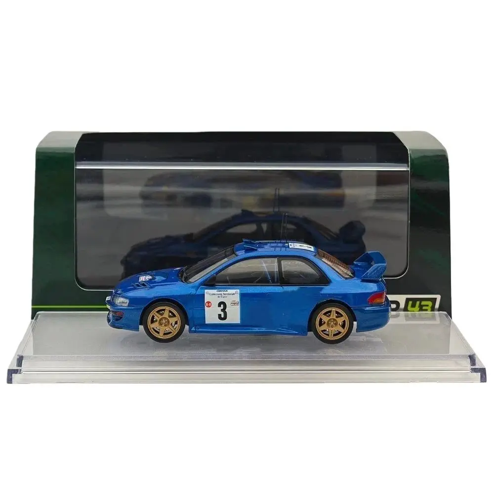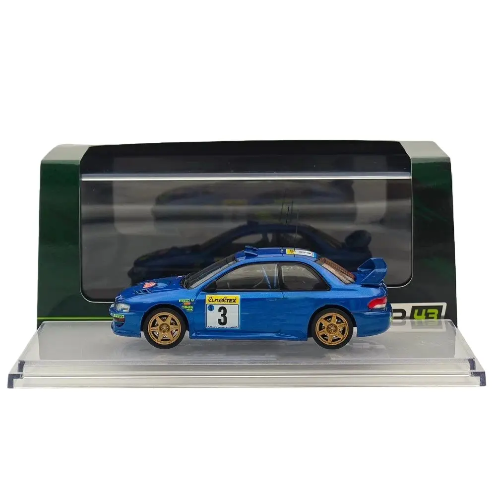 Experience the thrill of rally racing with this detailed 1:43 scale Subaru Impreza WRC diecast model. Its vivid blue body features daring rally markings, sleek racing decals, and a glossy finish that highlights every curve and line. Designed for enthusiasts and collectors, this meticulously crafted replica showcases realistic elements like the prominent rear spoiler and a detailed hood with a vent or scoop, capturing the essence of the original rally car. The transparent plastic windows reveal finely detailed interior components, while the gold-painted multi-spoke wheels and black tires add authentic sporty accents. Whether displayed on a shelf, used as a collectible gift, or part of a rally car collection, this model offers both visual appeal and exceptional craftsmanship, making it a standout piece for any enthusiast.