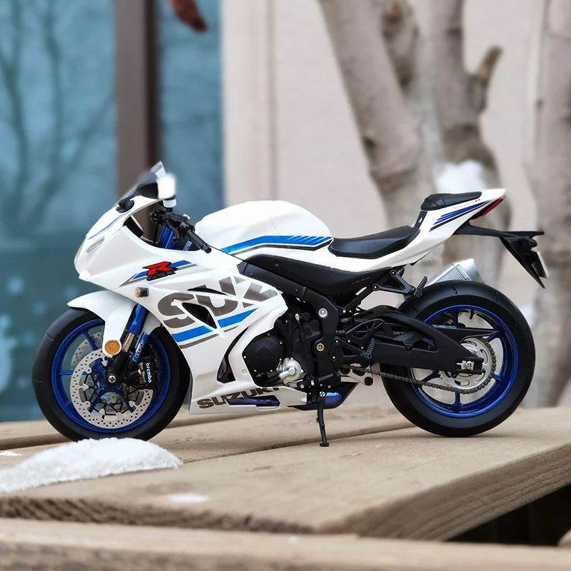 Experience the thrill of motorcycling with this highly detailed 1:12 scale diecast Suzuki GSX-R1000 model, crafted from durable metal and available in striking color options including black, blue, red, silver, and white. Featuring authentic aerodynamic fairing with a clear windshield, gold-colored front forks, and black rims with subtle green stripes, this static display piece captures the spirit of racing. Intricate details like ventilated disc brakes, textured seat, and integrated tail light enhance realism. Perfect for collectors and enthusiasts, it is designed for display and admiration, offering a vivid representation of the iconic sportbike in a compact, collectible size.
