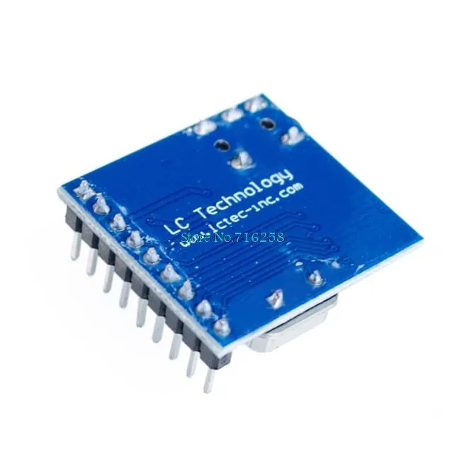 Experience seamless integration with this sleek, rectangular voice decoding module, featuring a vibrant blue PCB that complements its modern, professional aesthetic. Designed for clarity and functionality, it supports complex frequency input via the robust MT8870 decoding chip. The module’s compact dimensions of 26.5mm by 24.5mm make it ideal for various electronic projects, especially computer applications. The onboard voice input interface allows easy connection to audio sources, while five LED indicators provide instant visual feedback on output states. With pre-drawn main chip pins, installation and soldering are simplified, ensuring a smooth setup process. Its minimalist design, combining bold blue with metallic accents, exudes a high-tech, industrial charm. Crafted for enthusiasts and professionals alike, this module is perfect for precise, reliable voice decoding.
