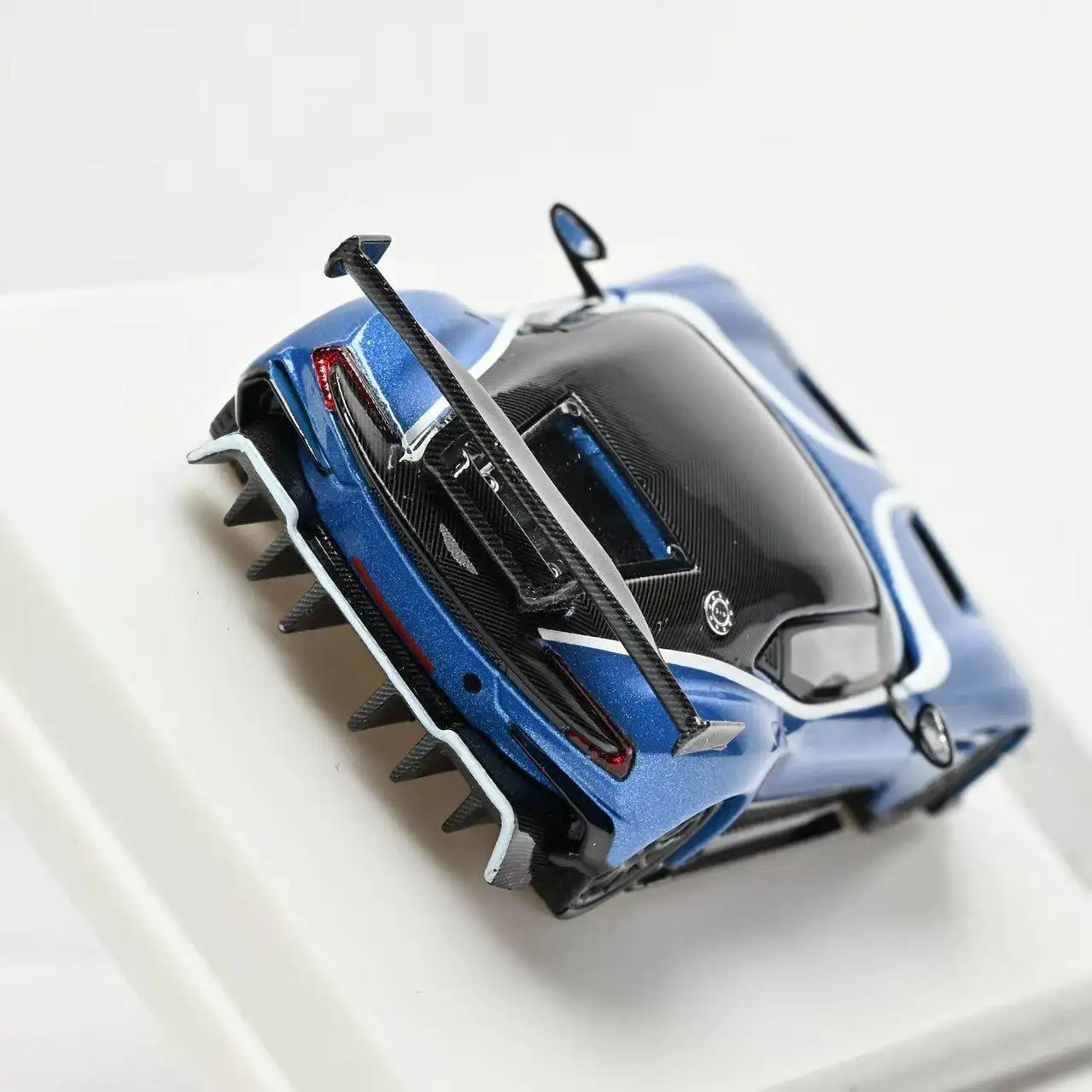 Immerse yourself in the thrill of high-performance racing with this meticulously crafted 1:64 scale diecast Vulcan alloy model, featuring a stunning metallic blue finish accented by glossy black elements on the roof, side skirts, and rear wing. Its aerodynamic design showcases sleek curves and sharp lines, complemented by detailed front grilles, venting features, and headlights. The black multi-spoke rims and textured tires enhance its dynamic, realistic appearance. Open the doors to reveal an intricately detailed interior, making this model an excellent addition for collectors who appreciate craftsmanship, speed, and precision engineering. Made of durable metal, suitable for ages 14 and up.