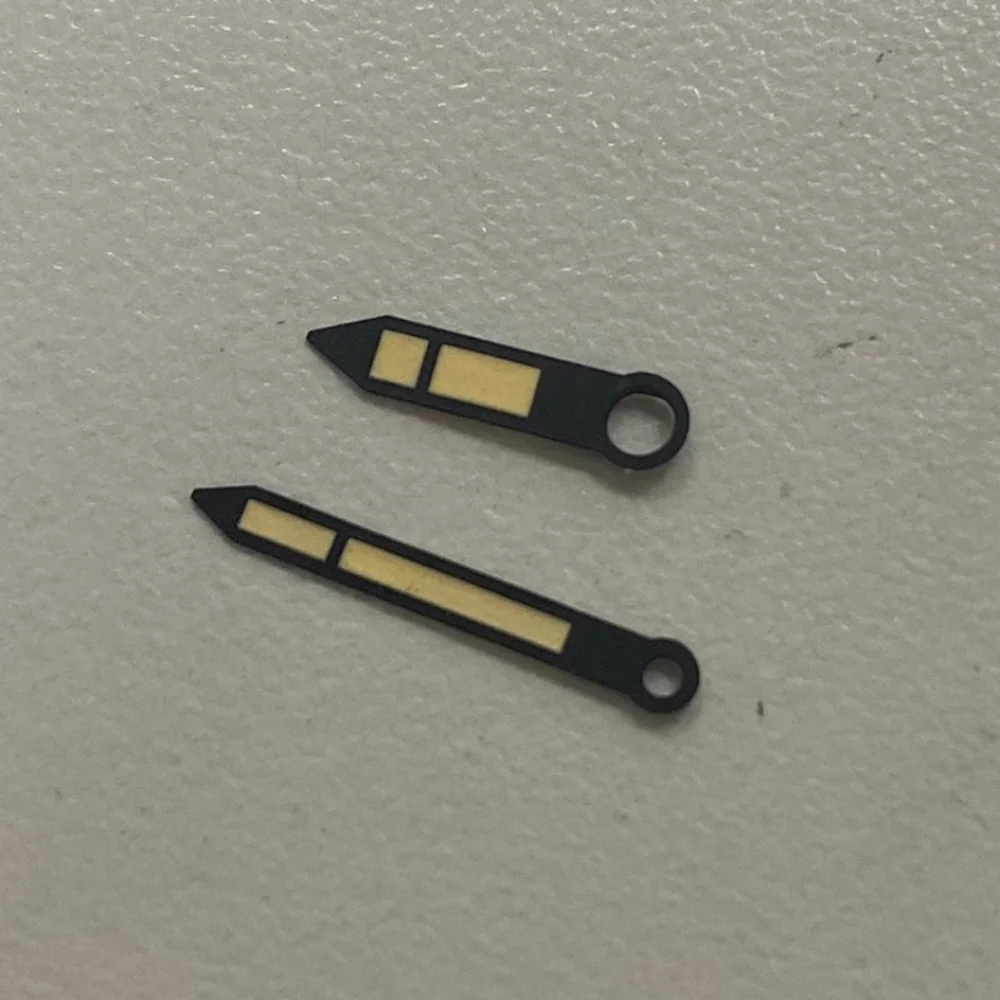 Elevate your watch collection with these precision-engineered blue watch hands, compatible with Swiss ETA6497/6498 and Seagull ST3600/ST3620 movements. Made of durable metal, each hand features a sleek, elongated design with a tapered shape, measuring 13mm by 17mm from the center needle hole to the tip. The vibrant blue framework is complemented by striking green luminous tips, ensuring clear visibility in low light. These hands offer a perfect blend of style and functionality, adding a modern touch to your timepiece while providing reliable performance. Ideal for watch enthusiasts seeking to customize or restore their watches with high-quality components.