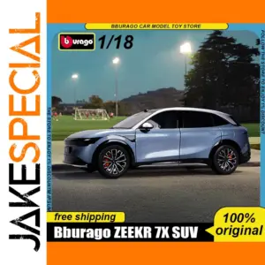 Experience the elegance of this meticulously crafted miniature of the Zeekr 7x SUV by Bburago. Positioned from the side view, this model captures the aerodynamic silhouette, sleek lines, and modern design features of the real vehicle. The metallic blue finish adds a sophisticated and contemporary appeal, reflecting light and enhancing realism. Every detail, from the black window frames, tinted windows, to the smoothly integrated door handles, emphasizes precision craftsmanship. The multi-spoke black rims, highlighted with orange brake calipers, lend a sporty, dynamic touch. With textured tires mimicking real rubber, this model reflects high-quality miniature craftsmanship. It’s the perfect collectible for enthusiasts who appreciate fine detail and a realistic aesthetic in a compact, durable form.