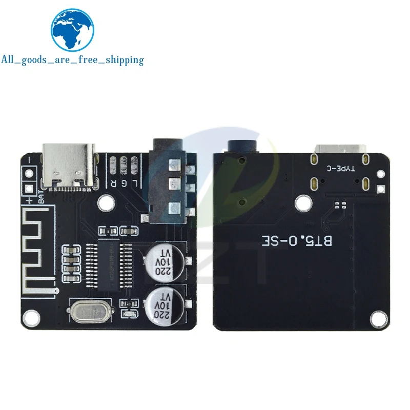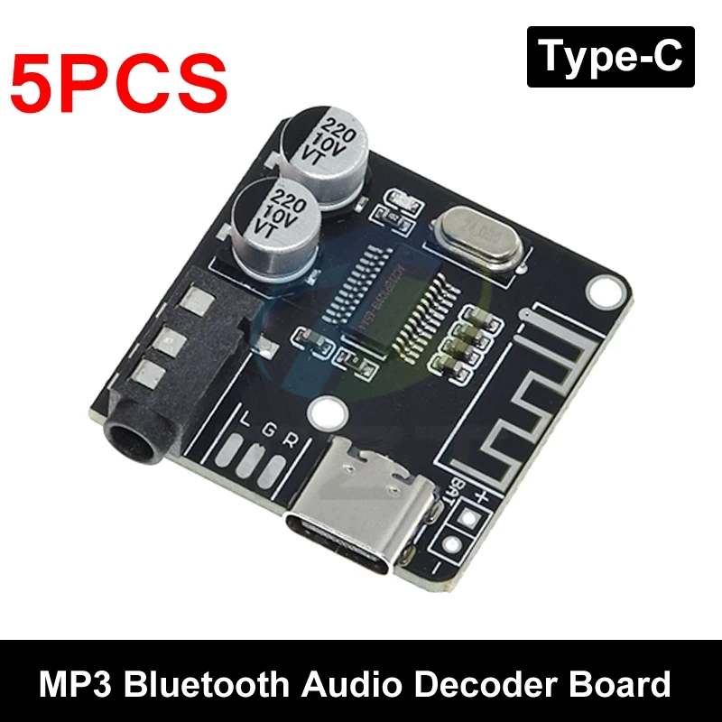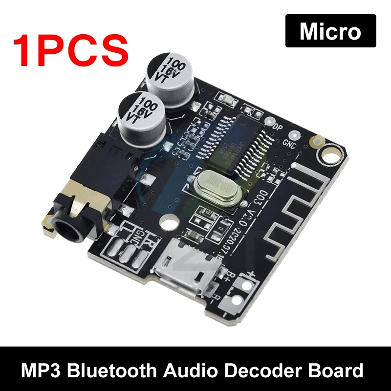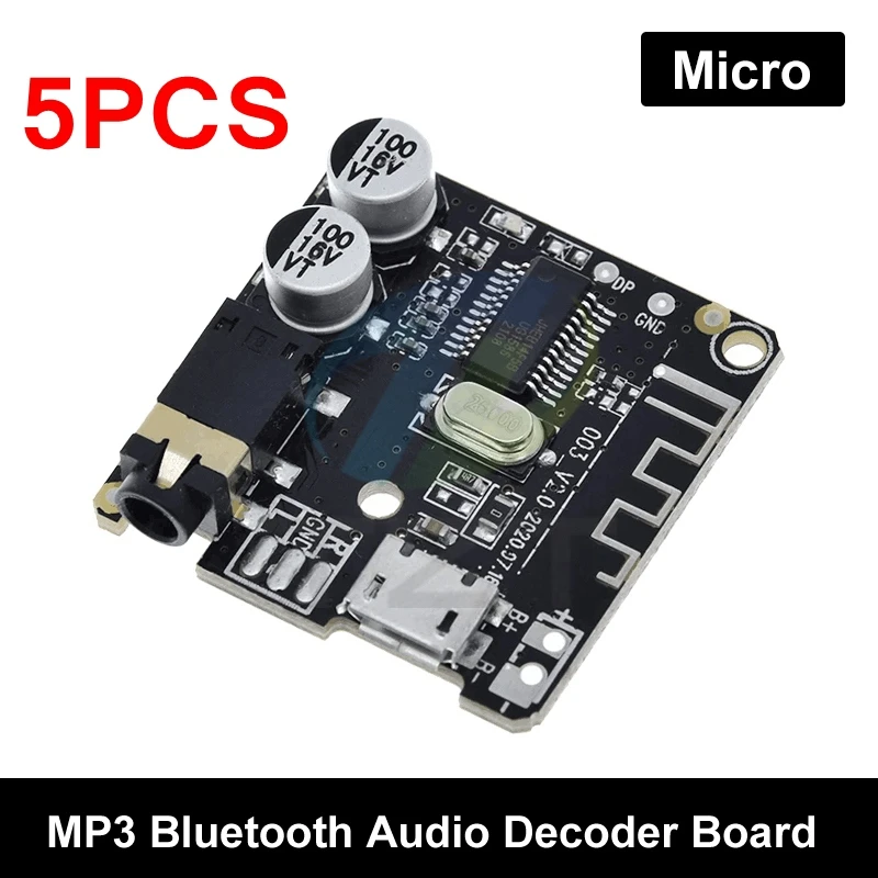 This compact Bluetooth 5.0 audio module, designed for MP3 and MP4 players, operates efficiently within a 3.7V to 5V power supply range. Featuring SMD mounting, it functions as a high-quality sound amplifier and music player, ideal for electronic projects involving switches and sensors. Built for versatility, its robust design supports operating temperatures from -40°C to +85°C, ensuring reliable performance in diverse environments. Fully customizable, this module enables seamless integration into a wide array of devices, delivering stable Bluetooth streaming and audio playback. Its sleek, minimalistic design and precise component placement reflect a professional, high-tech aesthetic perfect for advanced audio and electronic applications.