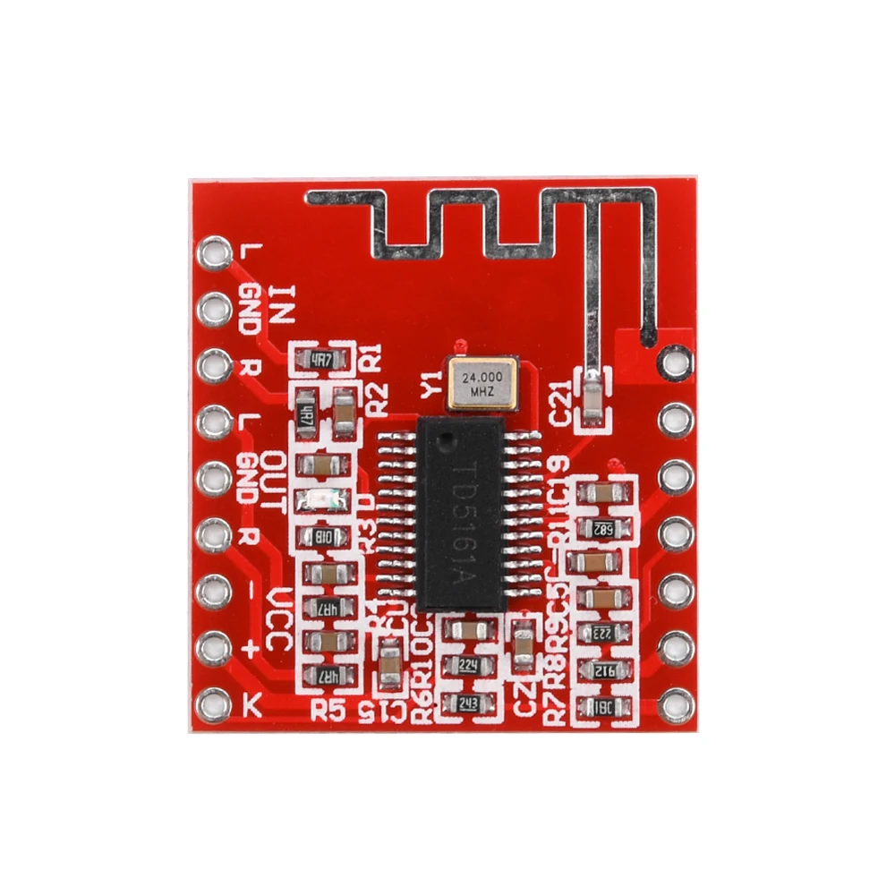Experience seamless wireless audio with this this Bluetooth receiver module, designed for versatile applications like smart speakers, headphones, and audio systems. Its compact size of just 25x23mm fits easily into your projects, offering reliable Bluetooth 5.1 connectivity for stable, long-range audio streaming. The module’s sleek, matte red circuit board balances technical sophistication with a modern aesthetic, featuring tiny surface-mount components and crisp silkscreen labels that emphasize precision and quality. The zigzag antenna trace enhances wireless signal transmission, while metallic through-holes allow flexible mounting options. With built-in MIC-IN for Bluetooth calling and mute control interfaces, this module is your ideal component for creating high-quality, low-energy audio solutions. Elevate your device with this innovative and sleek design.