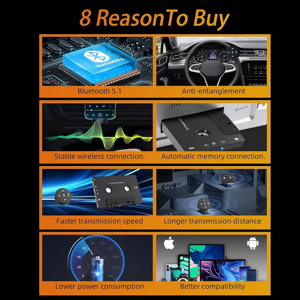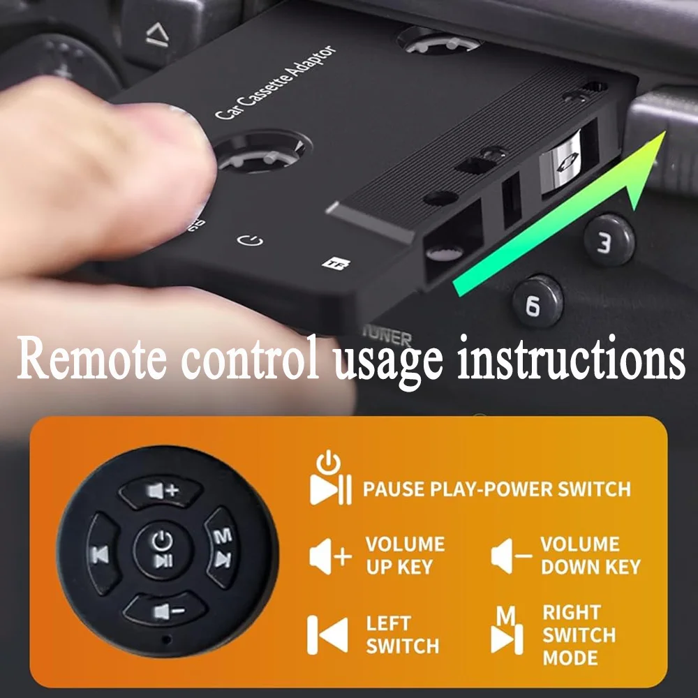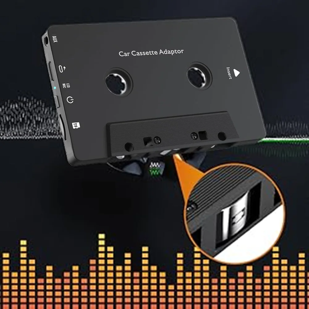 Experience seamless wireless audio with this sleek black Bluetooth cassette adapter featuring Bluetooth 5.1 for fast, stable connection and support for multiple modes including Bluetooth, TF card, and Walkman. Its built-in 3.5mm jack and Type-C interface enable versatile device compatibility with smartphones, tablets, and MP3 players. Enjoy up to 8 hours of high-fidelity sound, thanks to an intelligent digital noise reduction chip that delivers deep bass and delicate vocals. Equipped with a high-sensitivity microphone for HD hands-free calls, intuitive charging indicator, and extended signal coverage through optimized antenna, this portable adapter is perfect for reviving your classic car stereo or home audio system.