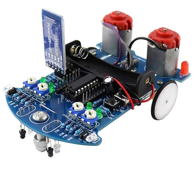 - Powered by a durable C51 microcontroller board, supporting Bluetooth connectivity for remote control and seamless integration with obstacle detection sensors.