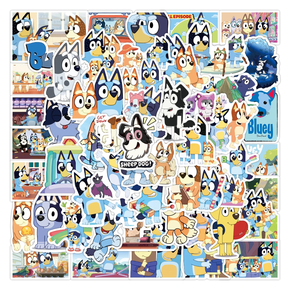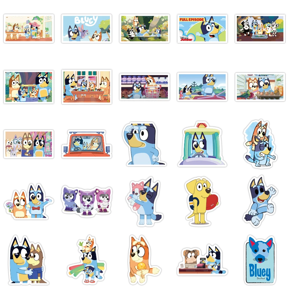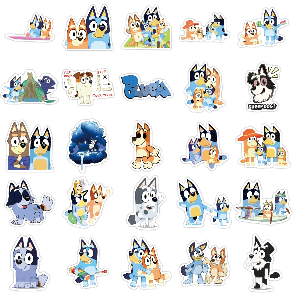 - Set of 50 waterproof decals, featuring vibrant Bluey characters with bold outlines and cheerful expressions for a lively aesthetic.