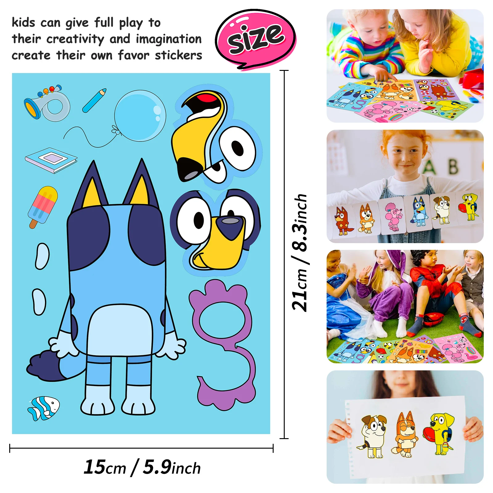 Imagine adding a splash of color and fun to your everyday items with this lively set of Bluey animation family cartoon stickers. Featuring six or twelve sheets, each with bold, cheerful backgrounds in pink, blue, orange, yellow, purple, and green, these decals bring playful characters and objects from the beloved Bluey series to life. Whether personalizing your phone, laptop, luggage, or skateboard, these waterproof and toxin-free stickers are perfect for expressing your creativity. The designs, characterized by bright outlines and expressive features, evoke a youthful, whimsical vibe. The set’s compact size (about 5 cm diameter per sticker) and light weight (30 grams) make customization effortless and vibrant.