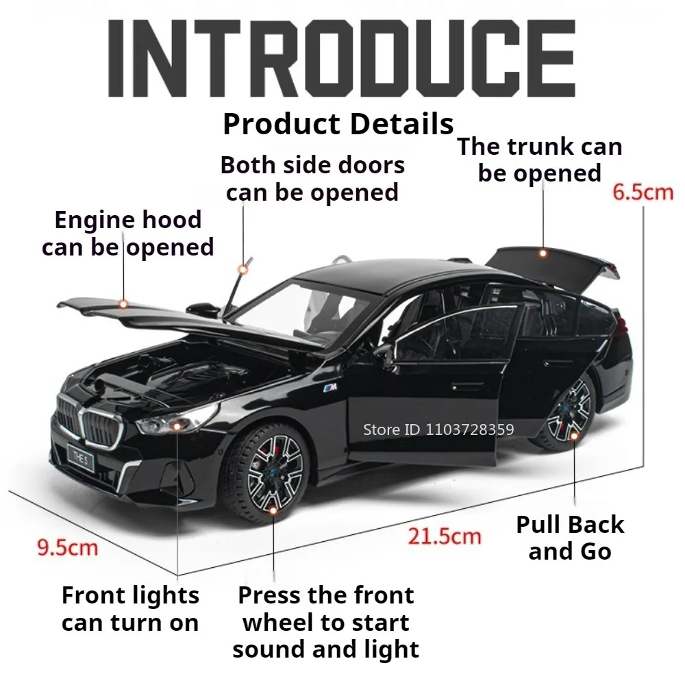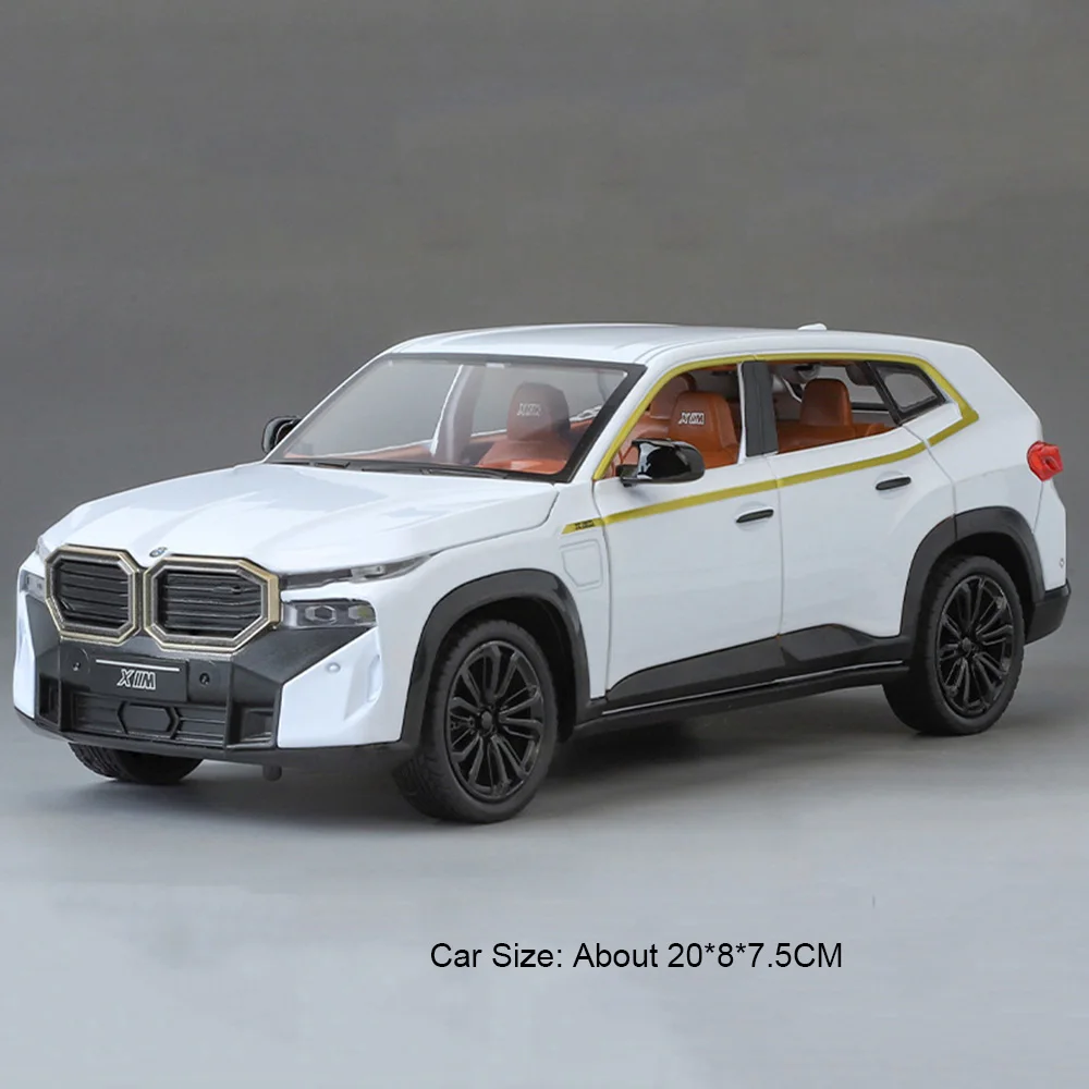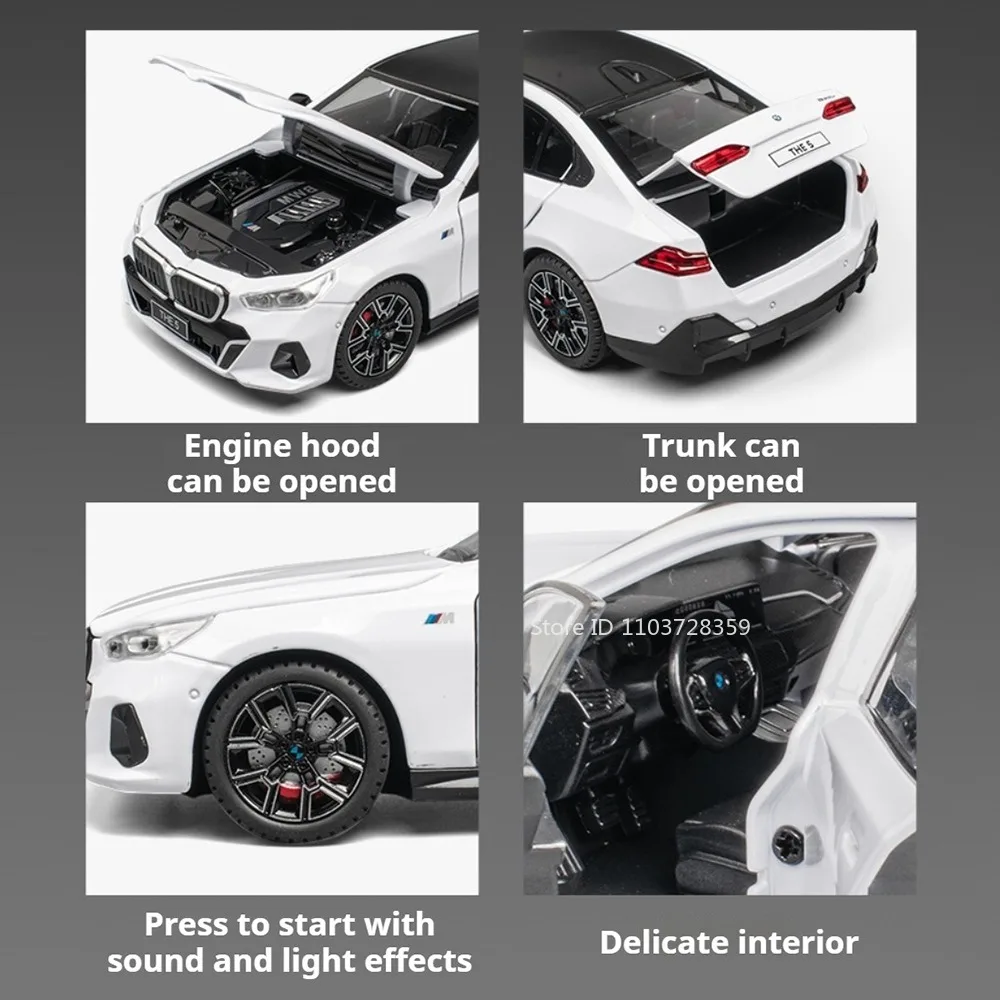 Experience the thrill of owning a beautifully crafted miniature replica of a luxury BMW 5 Series with this 1:24 scale model. Finished in sleek black, white, or yellow, it exudes sophistication and modern elegance. Crafted with a durable alloy body, reinforced plastic chassis, and textured rubber tires, this model showcases remarkable attention to detail, including a prominent kidney grille, LED headlights, and multi-spoke rims with colorful accents. Its realistic size ensures it fits comfortably in your collection or on display. The interactive features, such as sound and light effects, openable doors, hood, and trunk, bring this model to life. Ideal for collectors, car enthusiasts, or as a thoughtful gift, it combines craftsmanship with playability for an immersive experience.