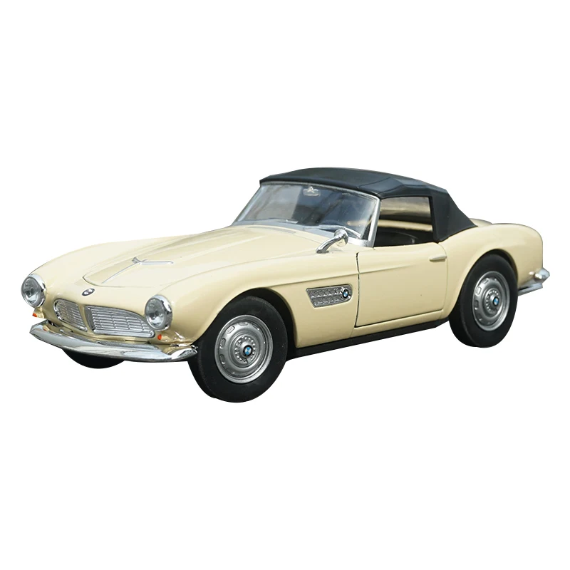 This 1:24 scale diecast model of the BMW 507 Convertible features a sleek alloy and plastic construction, available in vibrant yellow, red, and black. It boasts authentic details such as a soft-top roof, chrome accents, rounded headlights, and silver wheels with a central BMW logo, capturing the vintage elegance of the original vehicle. Measuring approximately 1/24th of the size, this meticulously crafted collectible combines high-quality finishes with realistic contours and refined design, making it perfect for enthusiasts and collectors. Suitable for ages 14 and up, it offers an impressive display piece that brings the timeless charm of the BMW 507 to life.