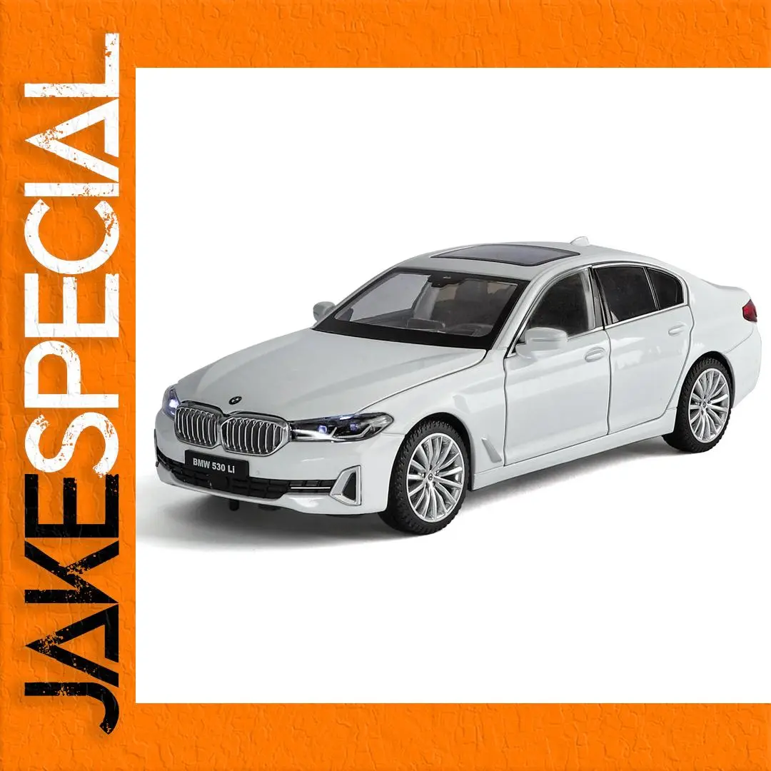 Imagine adding this exquisite BMW 530i 1:24 scale diecast model to your collection, beautifully crafted with high-quality materials that feel weighty and realistic in your hand. The glossy white finish is accented by elegant chrome details around the grille, windows, and body lines, showcasing the 530i’s sleek, aerodynamic design. The panoramic glass roof with dark tint adds a modern, luxurious touch, while the sharp LED-style headlights emit a bluish hue that highlights its sporty presence. The detailed taillights with clear lenses and finely molded multi-spoke alloy wheels with textured tires complete its authentic look. Perfectly designed to mimic the real car’s premium aesthetic, this model is a true showstopper for display and admiration.