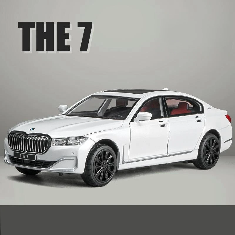 Experience the luxury and elegance of the BMW 7 Series 760Li with this meticulously crafted 1:24 scale diecast model. Featuring a sleek metallic finish in white, black, or red, it boasts realistic details such as the iconic kidney grille, sharply defined headlights, transparent windows revealing an intricate interior, black multi-spoke rims, and openable doors. The model includes pull-back movement, sound and light effects, and is made from durable metal, making it perfect for collectors and display enthusiasts. Designed for ages 14 and up, this high-quality replica captures the modern styling and premium feel of the original vehicle in a compact and highly detailed form.