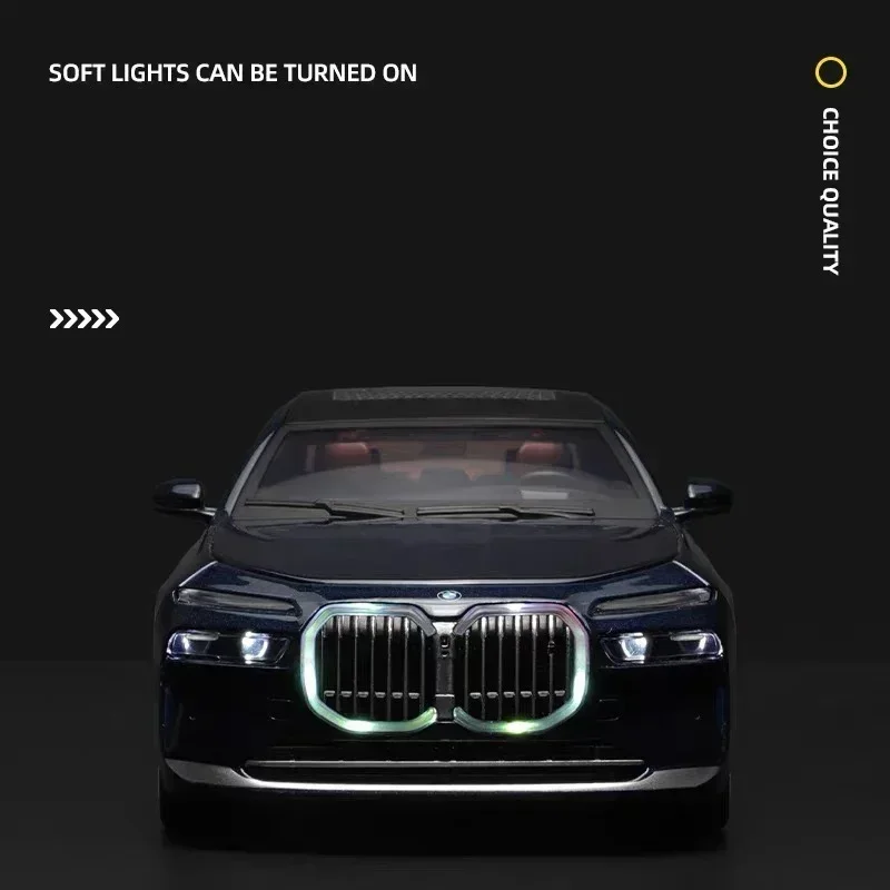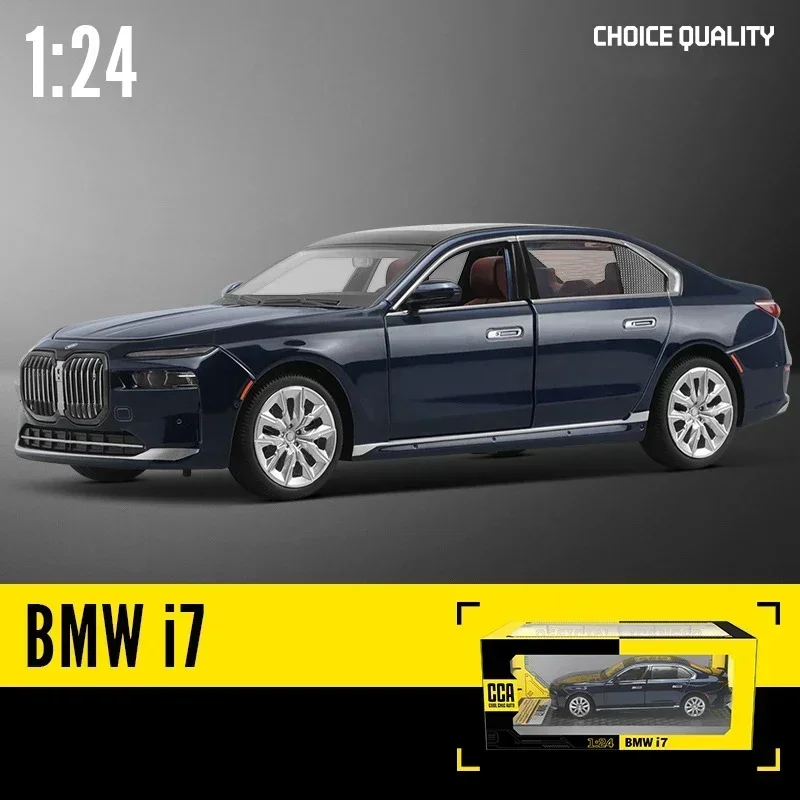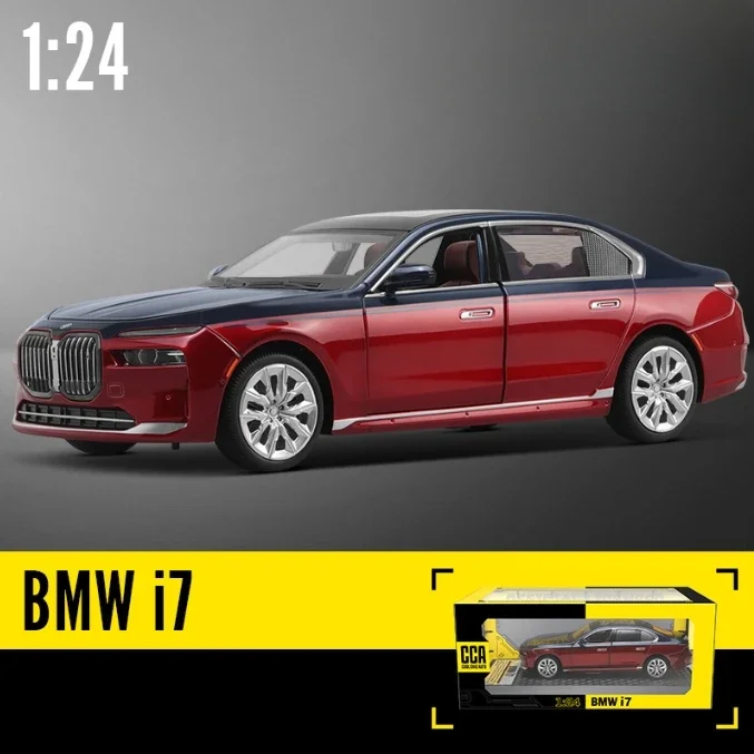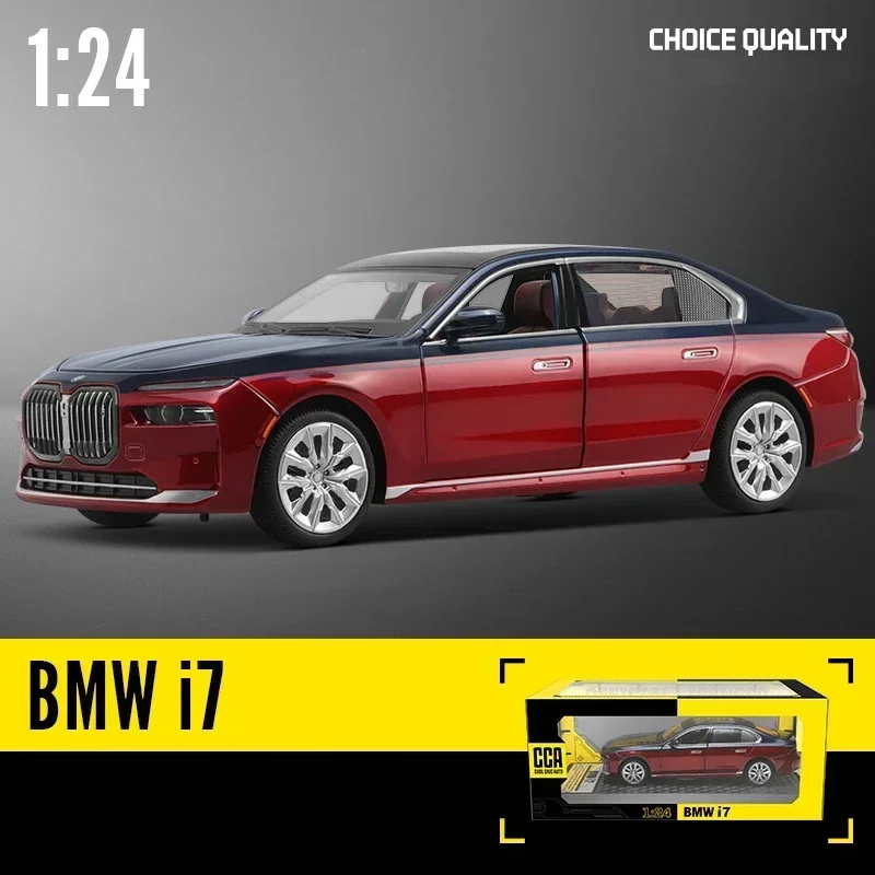- This model measures approximately 1:24 in scale, with high-quality alloy and plastic construction for durability and appearance. It features realistic design details matching the actual BMW I7 M70L.