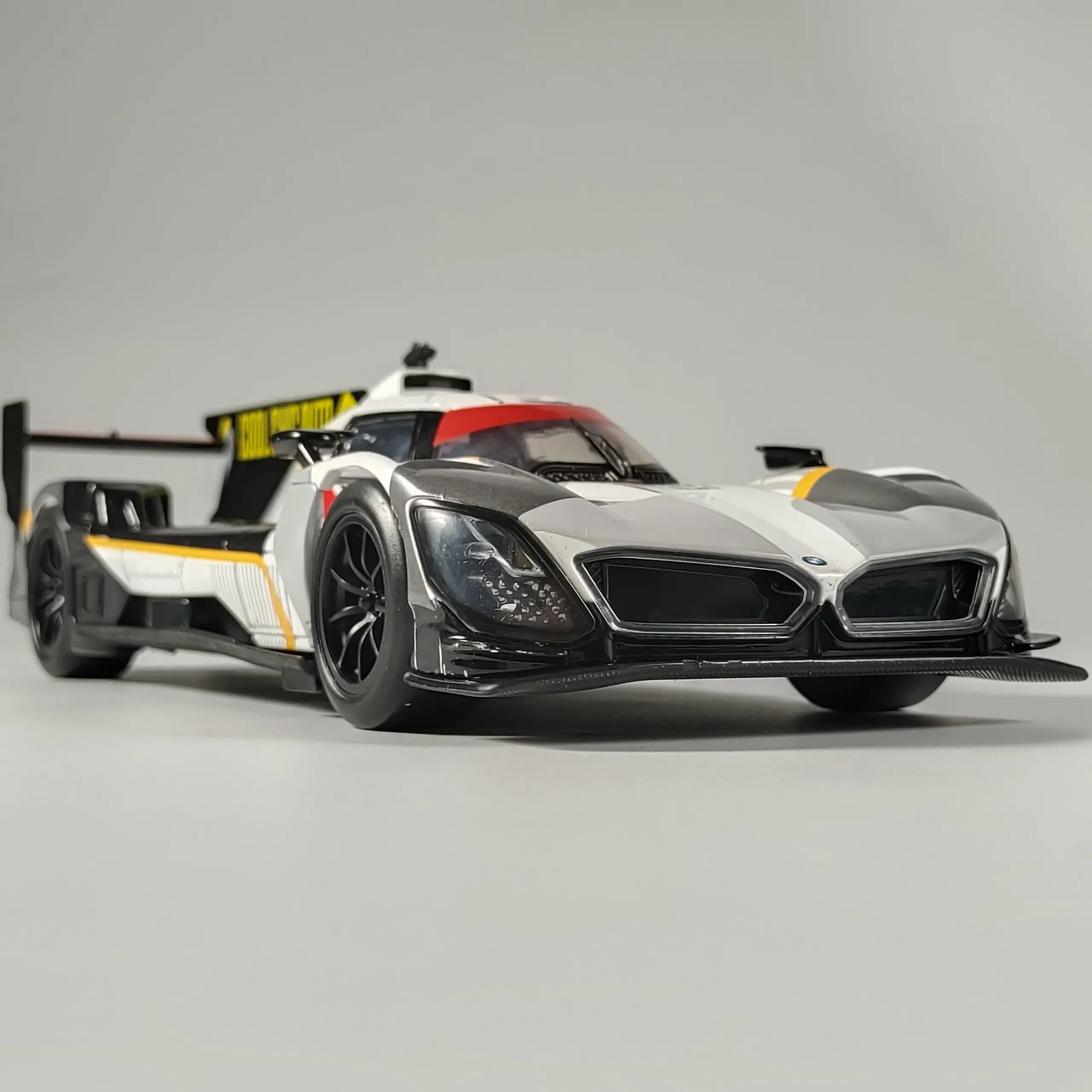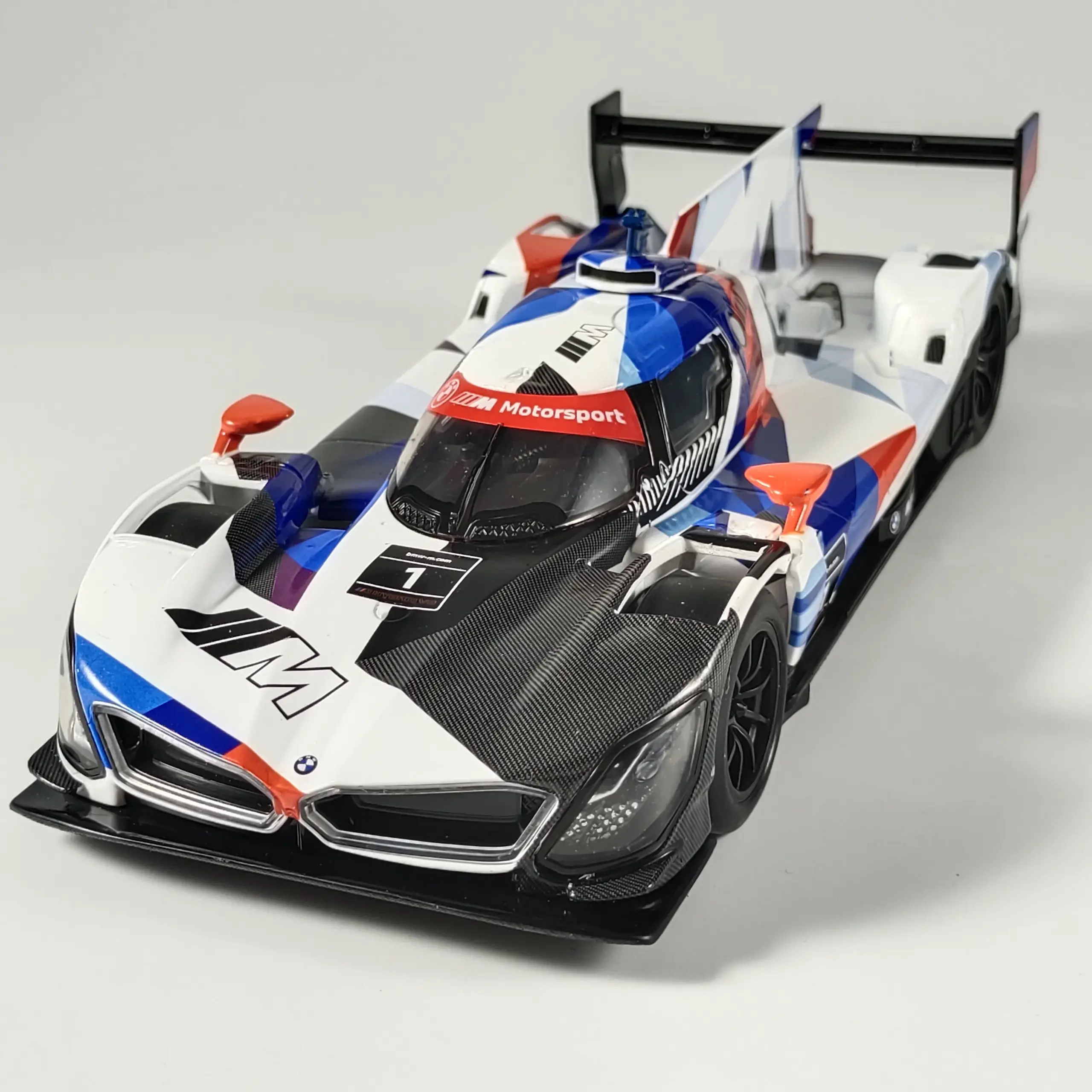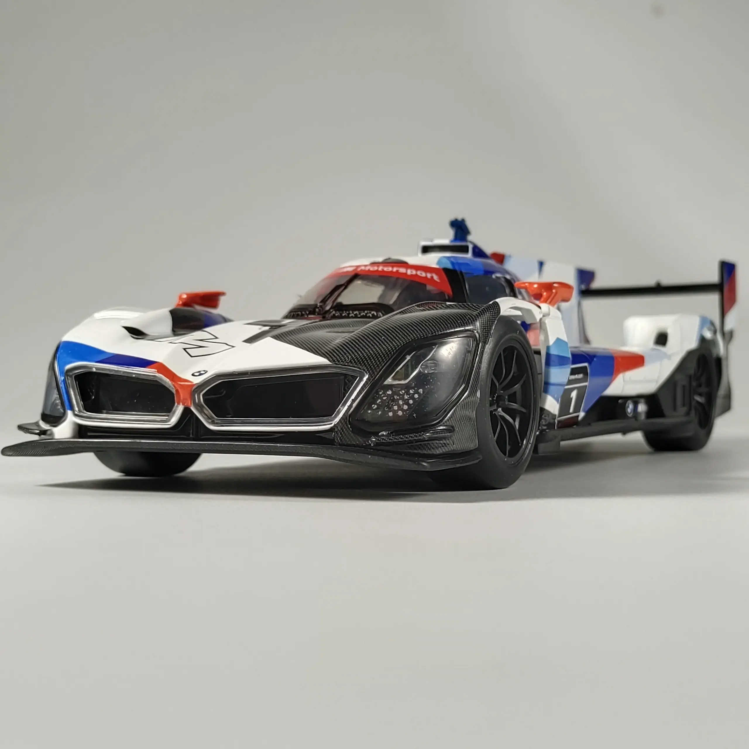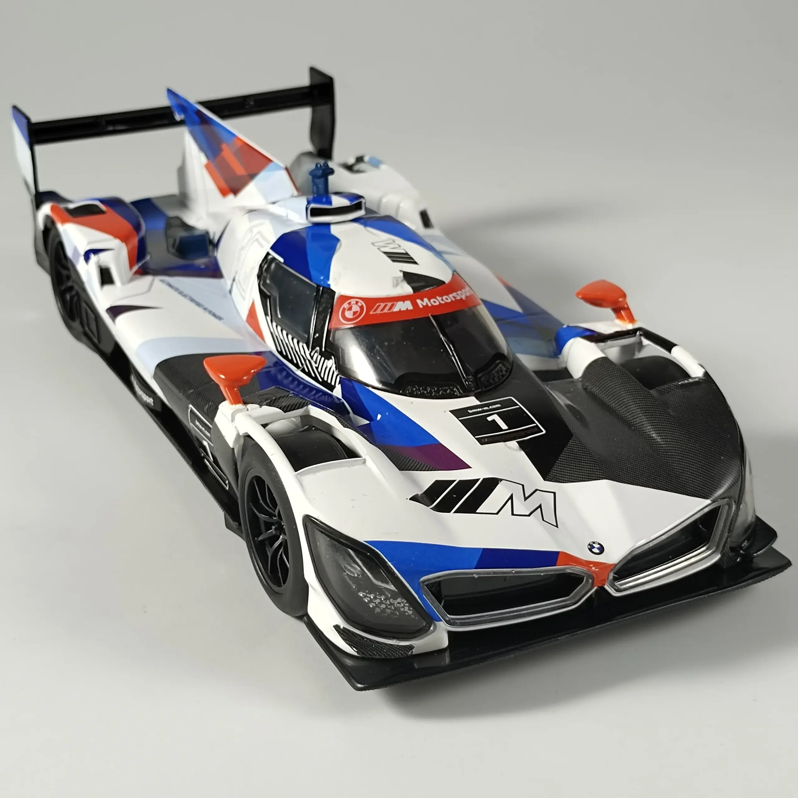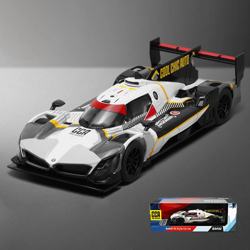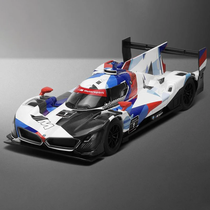 - The high-quality finish features a smooth, polished surface that emphasizes craftsmanship. Its vibrant graphics mimic the actual BMW M Hybrid V8's striking livery for a truly authentic look.