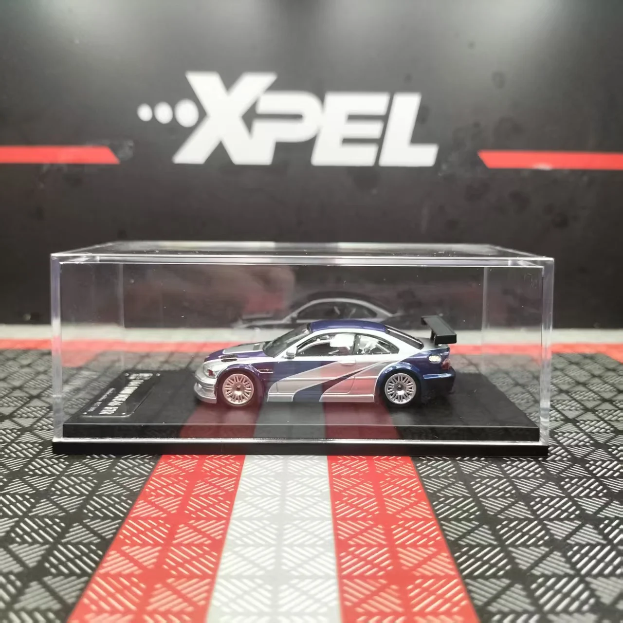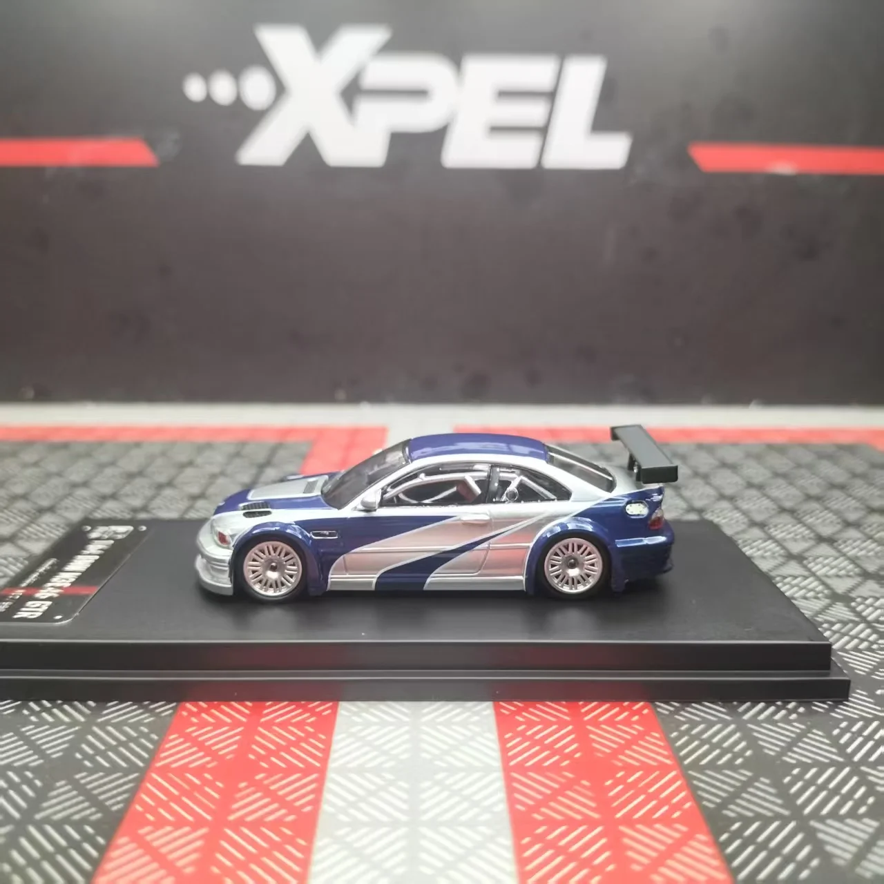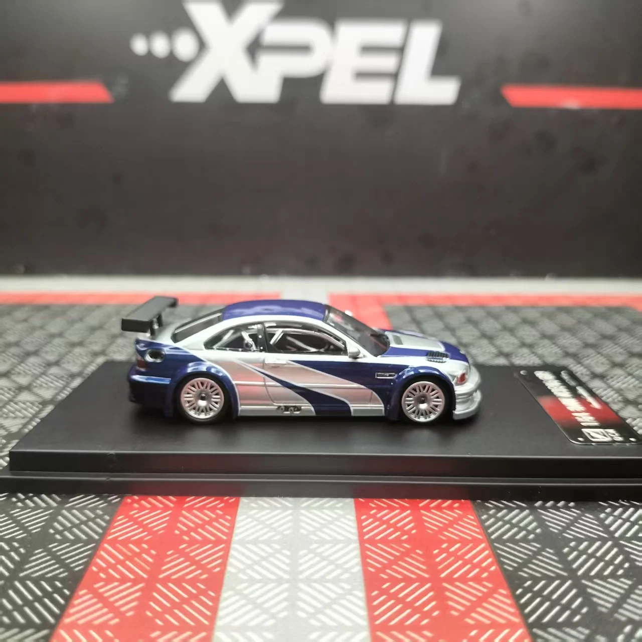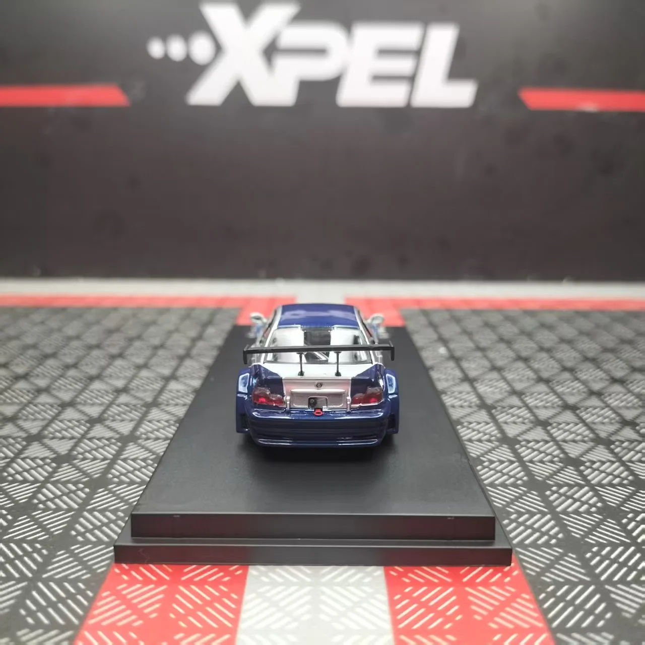 Experience the sleek and sporty design of the 1:64 scale BMW M3 GTR E46 die-cast model, featuring a metallic blue finish accented with silver details. Crafted from alloy, plastic, and rubber, this fully enclosed static display captures the dynamic contours, textured hood vents, detailed headlights, and racing decals for an authentic look. With silver-rimmed wheels and black tires, it offers a realistic high-performance appearance. Perfect for collectors and enthusiasts over 14 years old, this model makes an ideal gift, souvenir, or display piece, showcasing the iconic race-inspired aesthetic in a precise and refined miniature.