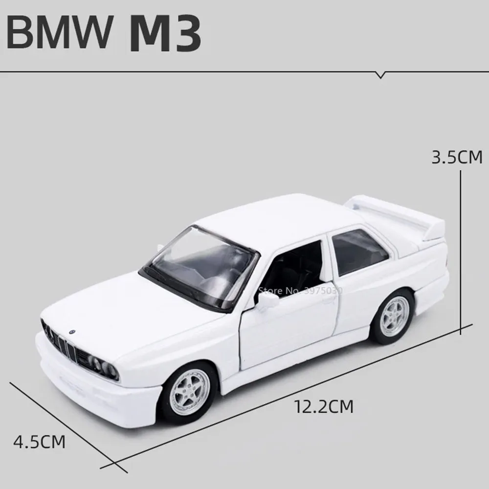 Enhance your collection with this detailed 1:36 scale diecast alloy model car, available in four striking color options: M3 1978 in black and white, and M4 CSL in grey and white. Crafted from zinc metal with a plastic chassis and rubber tires, this high-quality miniature measures approximately 12.3 x 5.5 x 3.8 cm for the M4 CSL and 12.2 x 4.5 x 3.5 cm for the M3 1978. Features include two opening doors, a pull-back function for smooth rolling, and durable construction. Batteries are included, and the model is CE certified, making it an excellent addition for enthusiasts and collectors seeking realism and craftsmanship in every detail.