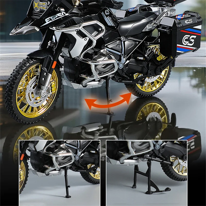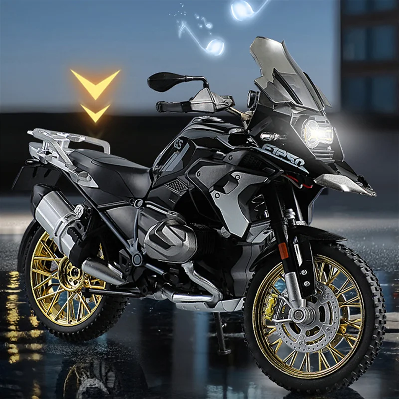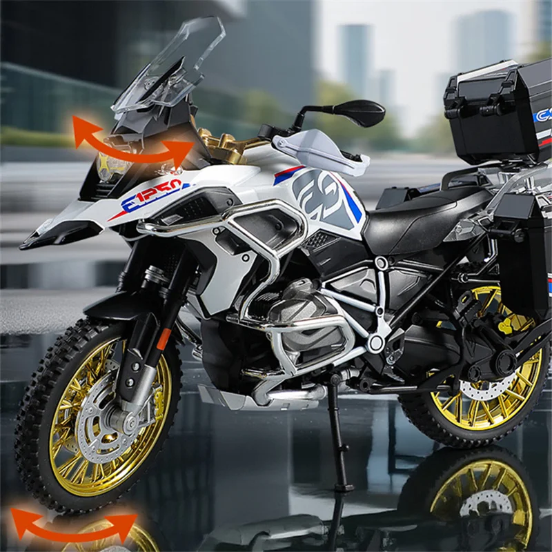 Discover the perfect addition to your collection or a thoughtful gift for motorcycle lovers. This highly detailed 1/10 scale model captures the rugged spirit and sleek design of the iconic BMW R1250 GS Adventure motorcycle. Its lifelike features, built-in sound and light functionalities, and durable alloy construction make it stand out. Whether displayed on a shelf, desk, or dedicated showcase, this model evokes a sense of adventure and craftsmanship. Don't miss the chance to own this stunning replica that embodies the thrill of off-road riding in a compact, collectible form. Elevate your collection now!