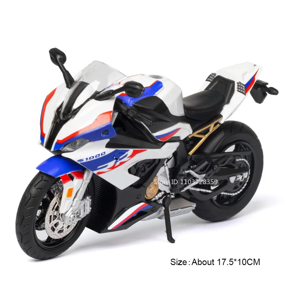 - The model measures roughly 18.8 x 5.5 x 9.3 cm for the RRS1000 and 17.5 x 10 cm for the S1000RR, making it compact but rich in detailed features suitable for display or play.