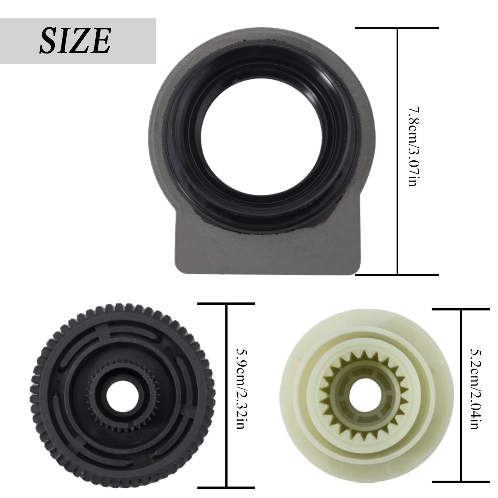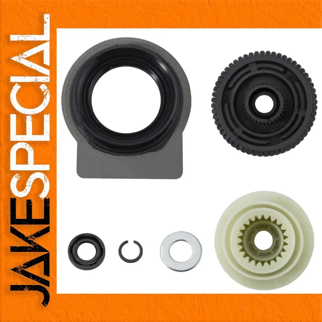 The Transfer Case Actuator Motor Gear Repair Kit is designed for compatibility with various BMW models, including X3 E83 (2003-2010), X5 E53 (2003-2006), X5 E70 (2006-2010), and X6 E71 (2005-2014). This new kit meets OEM standard sizes and includes essential parts like a black plastic gear with fine teeth, a larger white plastic gear with a star-shaped interior, a rubber seal, a black rubber O-ring, a shiny metal washer, and a black retaining clip, all engineered for optimal performance. Fits OEM part numbers: 27102413711, 27107566296, 27107541782, and 27107568267.
