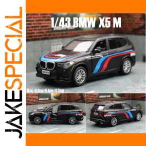Experience the thrill of owning this exquisite miniature of the BMW X5 M SUV, meticulously crafted in a 1:43 scale. Made from durable alloy and plastic, this detailed model captures the bold and sporty essence of the full-sized vehicle. Its sleek black finish with contrasting racing stripes or pristine white color adds a vibrant touch to any collection or display. The model features realistic details including multi-spoke alloy wheels, textured tires, signature kidney grille, and finely molded door handles and mirrors. Sized perfectly at approximately 11.3 cm long, 5.1 cm wide, and 4.2 cm high, this collector’s item combines craftsmanship with authenticity, making it a compelling addition for enthusiasts and collectors alike.