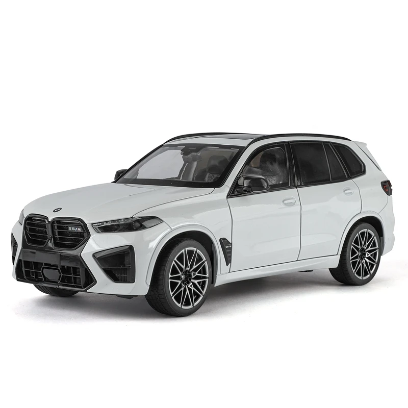 Experience the thrill of owning this highly detailed 1:18 scale diecast BMW X5M model, crafted with exceptional precision. With its realistic design, the model features four openable doors, a functional front hood revealing a miniature engine, and a trunk, allowing you to appreciate every detail of this luxury SUV. Rendered in glossy white, it captures the sleek and modern aesthetic of the original vehicle, complemented by sharp angular lines, a bold front bumper, and the signature kidney grille with vertical slats. Made from sturdy metal, this collectible combines durability with intricate craftsmanship, bringing a true-to-life feel for enthusiasts and collectors alike. Its realistic features make it an ideal display piece for any automotive enthusiast's collection.