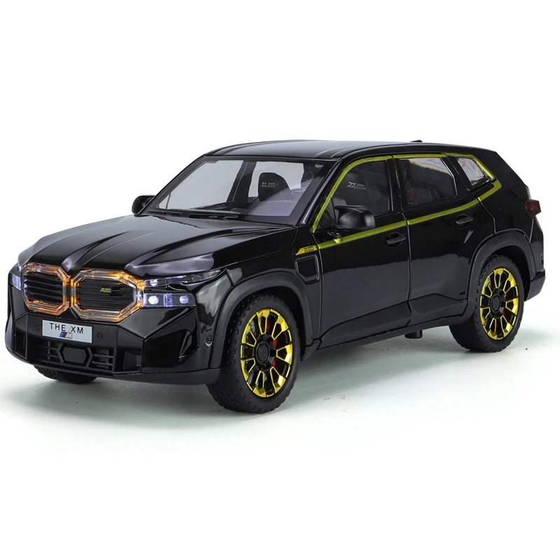 Immerse yourself in the sophisticated world of automotive collectibles with this meticulously crafted BMW XM 1:24 diecast model. Perfectly sized for display, it captures the sleek, aerodynamic silhouette of the original luxury SUV with sharply contoured roof and hood lines that evoke a sporty and modern aesthetic. The striking metallic blue finish enhances its high-end appeal, complemented by detailed features such as a chrome kidney grille and finely rendered headlights. The transparent plastic windshield and side windows are accented with vibrant yellow outlines, adding visual contrast. With intricately designed black and yellow rims, rubber-like tires, and exterior accents like gloss black side strips and black side mirrors, this model offers a realistic and stylish representation of the BMW XM. Its precise craftsmanship makes it a captivating piece for any collector or enthusiast to admire and showcase.