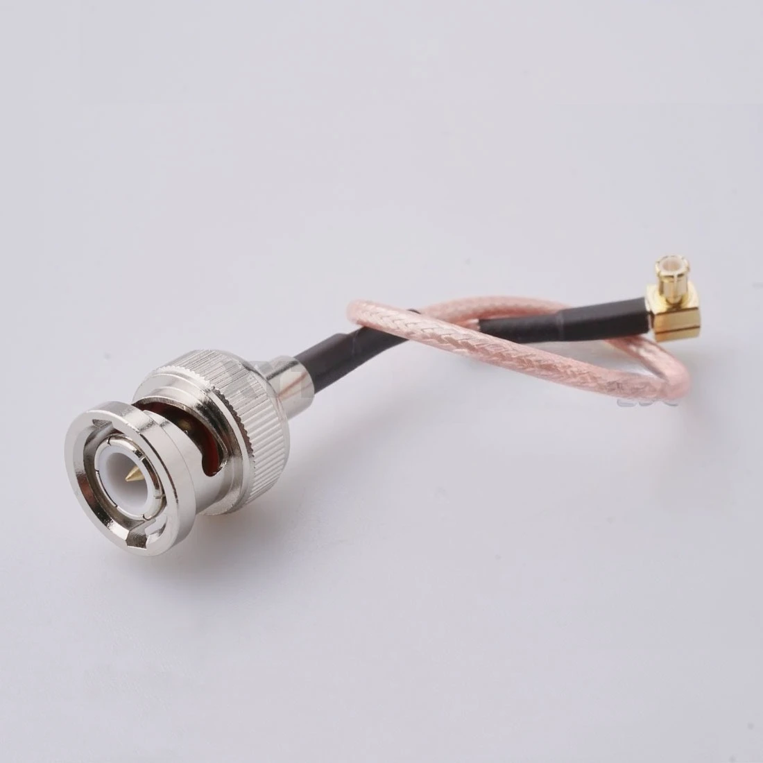 Experience reliable signal transmission with this set of two high-quality RG316 coaxial cables. Measuring 15 centimeters each, these cables feature a delicate light pink braided outer sheath, adding a subtle touch of style to your professional setup. The metallic BNC male connector on one end offers a polished, industrial look with a secure locking mechanism, ensuring stable connection. The other end boasts a gold-colored F-type male connector, threaded for firm attachment and durability. Black strain reliefs protect the connectors against wear, enhancing longevity. Designed for high-temperature RF applications, these cables are perfect for communication equipment where precision and reliability are paramount. Their sleek, professional appearance makes them an excellent addition to your communication setup, combining aesthetics with high performance.