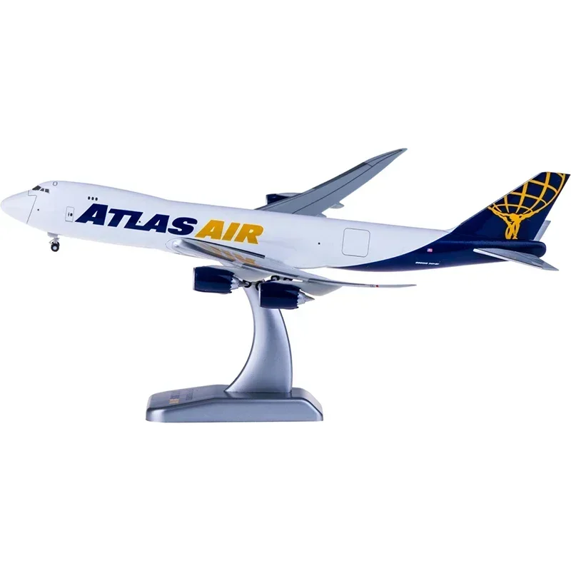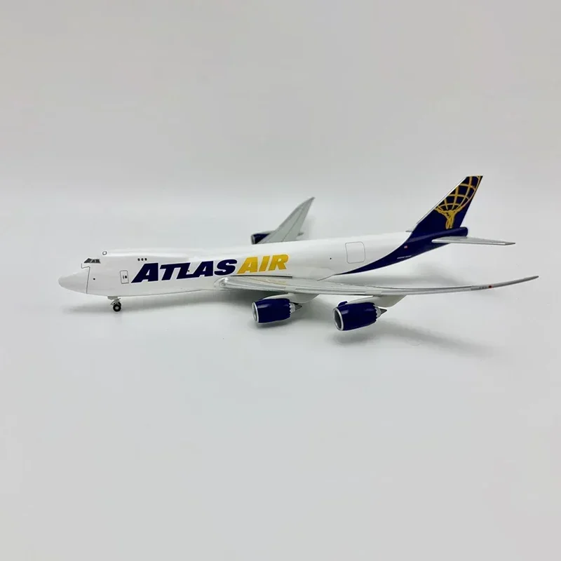 Step into the world of aviation collectibles with this meticulously crafted 1:400 scale diecast model of the Boeing 747-8F Dreamlifter. Measuring approximately 19.08 cm in length, 17.1 cm in wingspan, and 4.85 cm in height, this model captures every intricate detail of the iconic aircraft. Constructed from high-quality metal alloy, it boasts a realistic metallic sheen and surface details, including finely rendered panel lines, wing structures with winglets, and four precisely modeled engines. The aircraft features a striking white fuselage accented with bold “ATLAS AIR” lettering in dark blue and bright yellow, complemented by a vibrant yellow emblem on the tail fin set against a dark blue background. Its sleek design exudes modern elegance, perfect for display on any collector’s shelf.