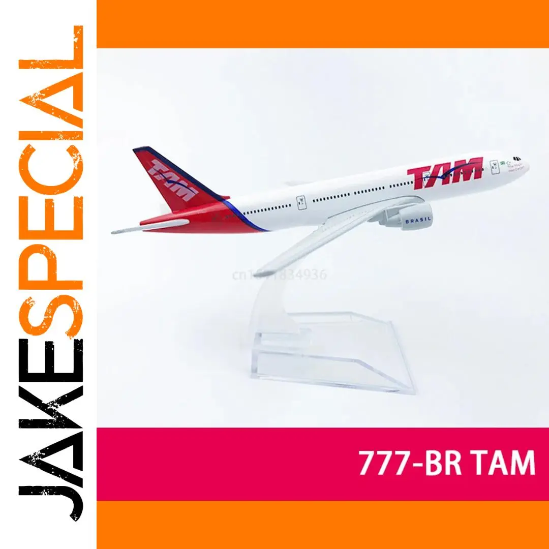 Experience the elegance of aviation with this stunning 15cm Boeing 777 model featuring the bold branding of TAM Airlines. The model showcases a pristine white body with dynamic red and blue contrasts, vividly displaying the “TAM” logo on its fuselage. Mounted on a clear stand, it replicates a flying position, allowing you to admire the exquisite wing and engine details. Its craftsmanship from quality materials guarantees durability, making this model a perfect centerpiece for any aviation enthusiast's collection. Whether for gifting or personal enjoyment, this representation of the iconic Boeing 777 captures the spirit of flight and fine design. Elevate your collection with this impeccable piece today!