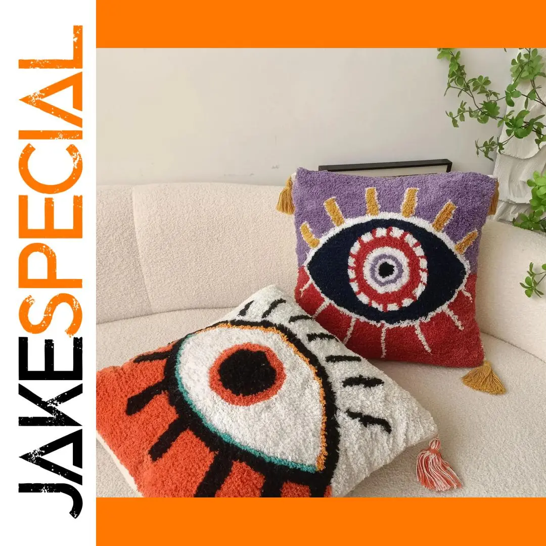 Envision yourself relaxing with this visually striking, handcrafted pillow cover adorning your sofa or bed, bringing new energy and personality to your space. Its vibrant colors, textured embroidery, and bold eye motif turn any room into a lively, artistic sanctuary. Crafted with care and detailed craftsmanship, this accessory is more than a decoration—it's a statement piece that reflects your unique style. Elevate your interior instantly, making every corner of your home feel personalized and welcoming. Don't wait to add this exquisite bohemian touch to your decor collection today!