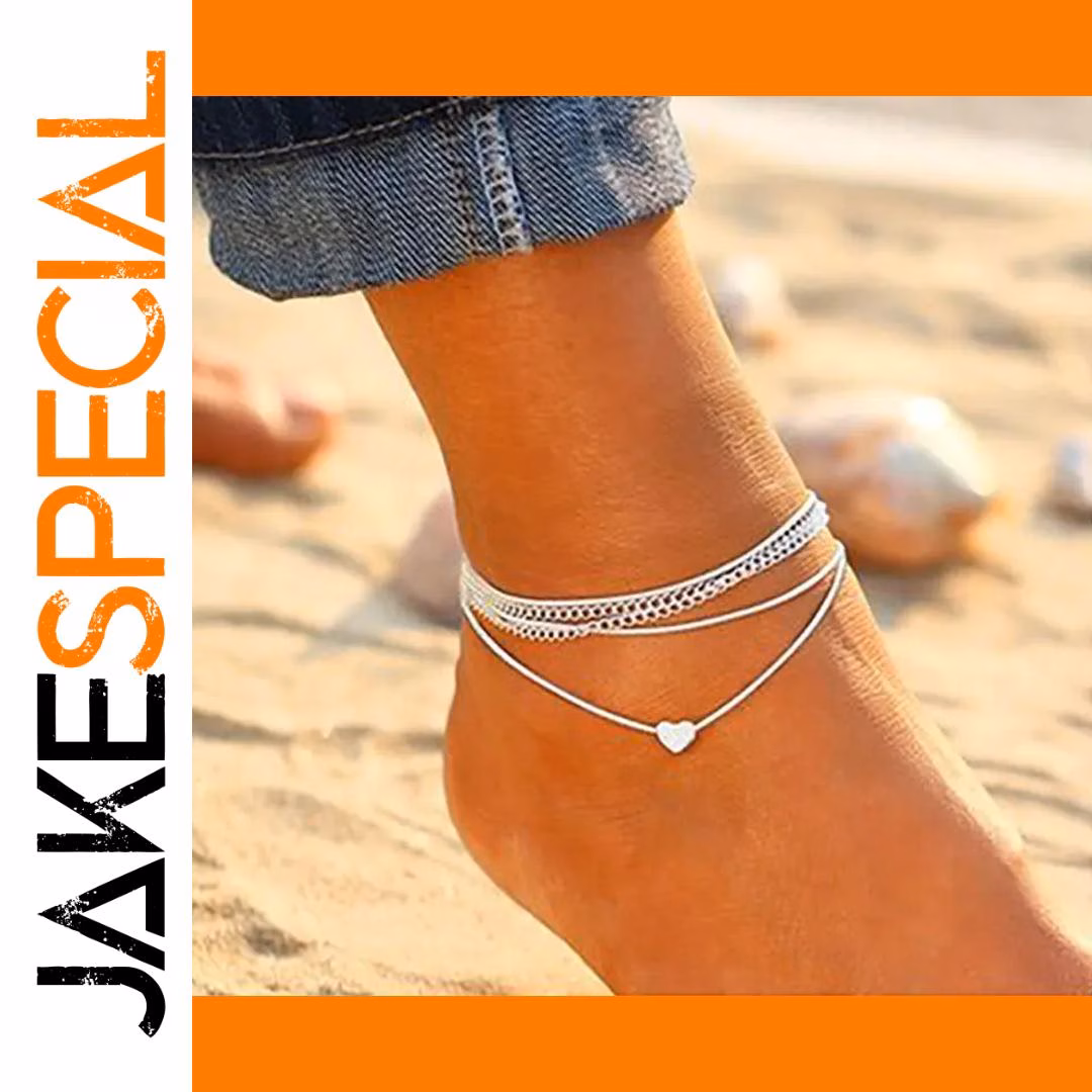 - This stylish anklet from This features layered, delicate silver-colored zinc alloy chains with charming heart-shaped and cut-out patterns, perfect for a bohemian and fashionable seaside look.